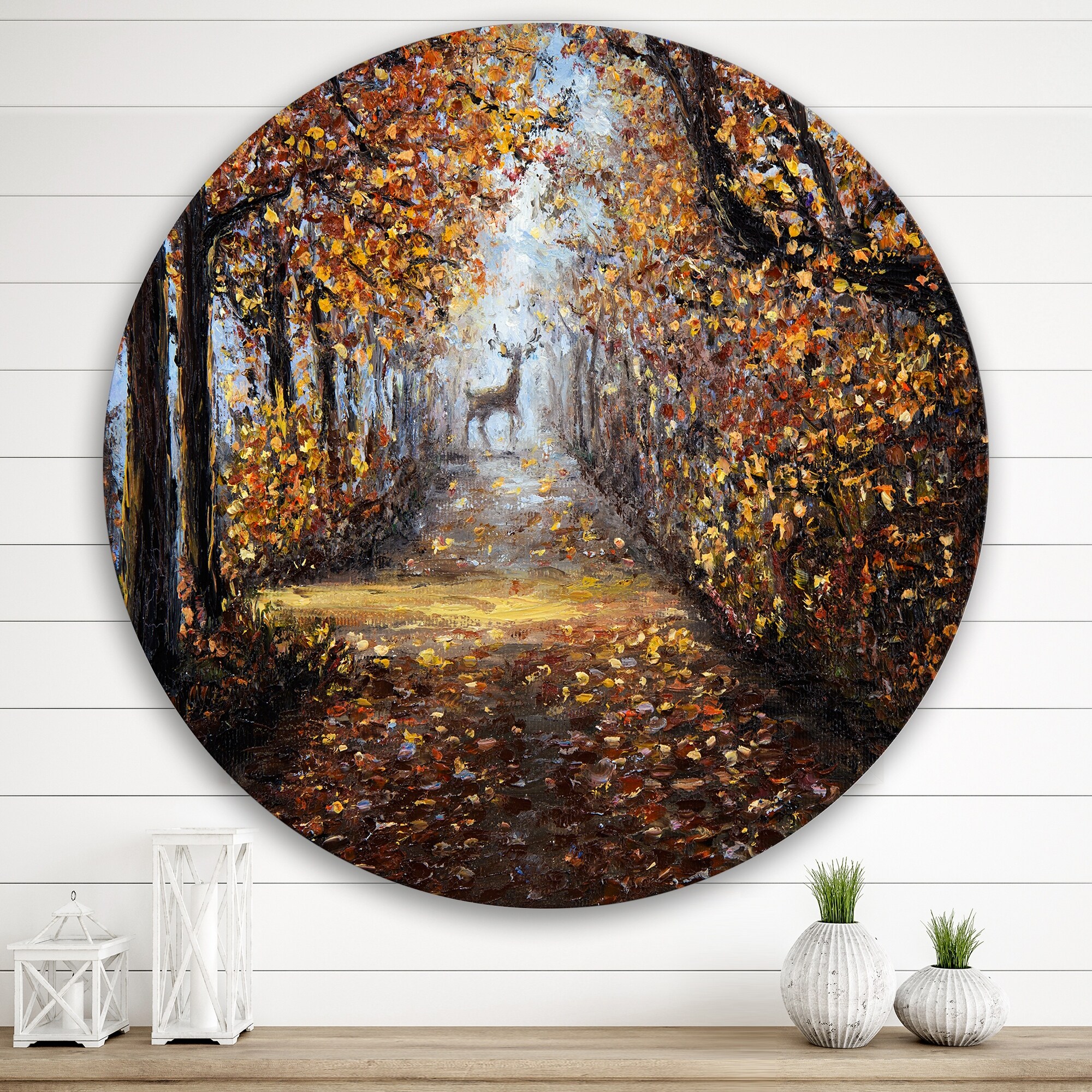 Designart 'Deer In the Park' Lake House Metal Circle Wall Art