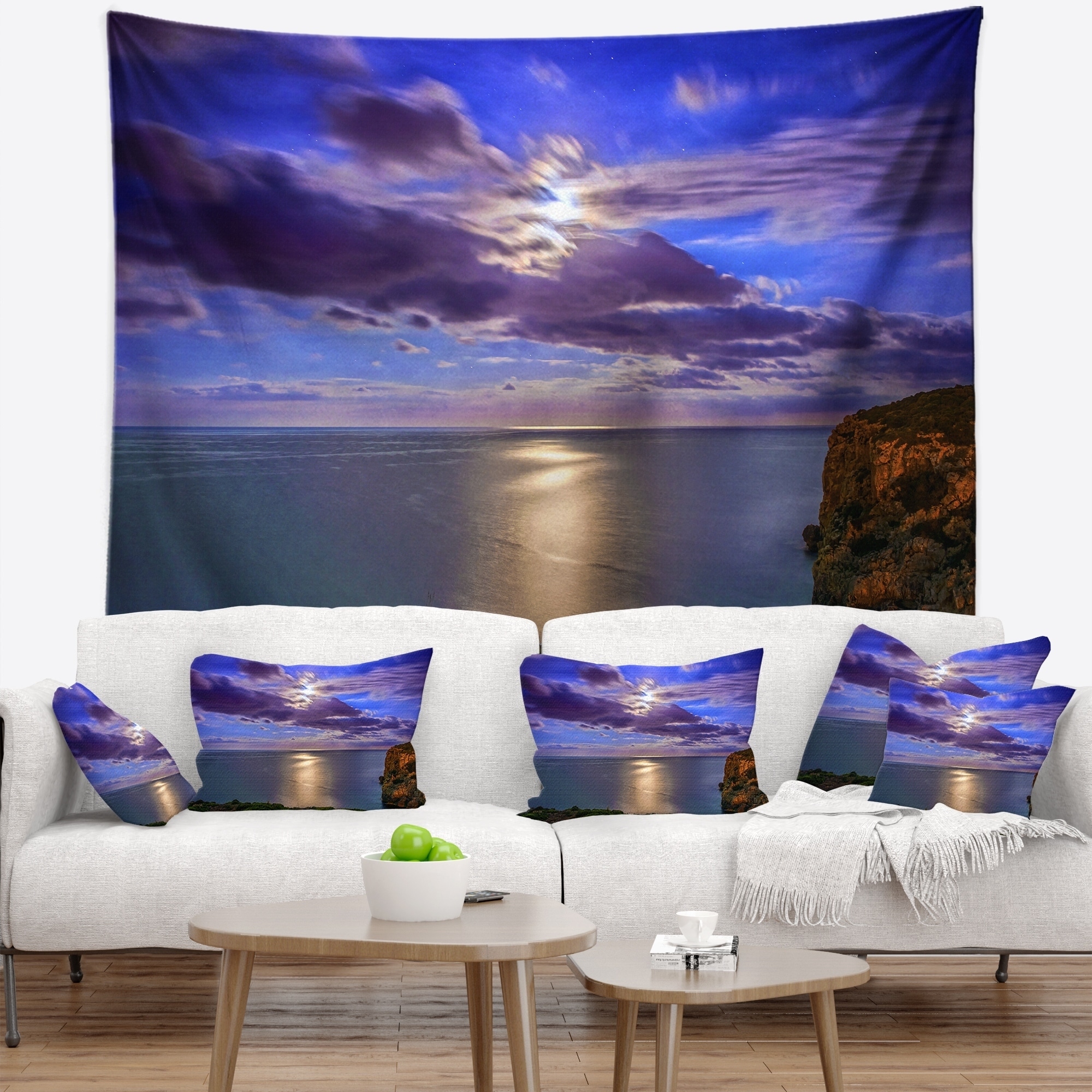 Designart 'Moon Reflecting in Blue Sea' Modern Seascape Wall Tapestry