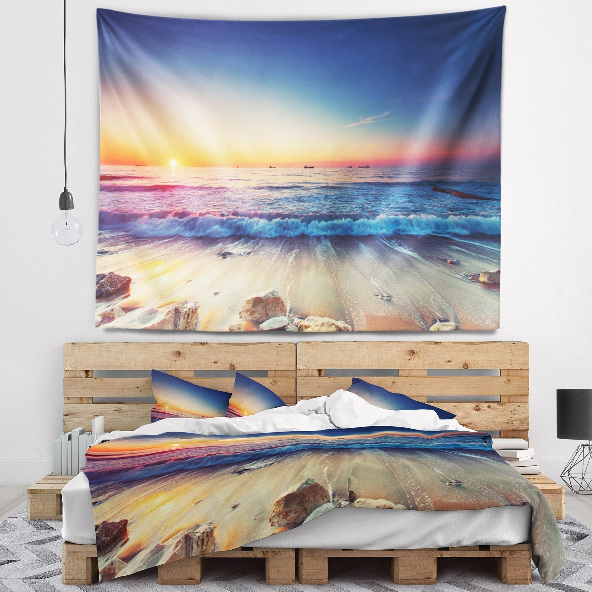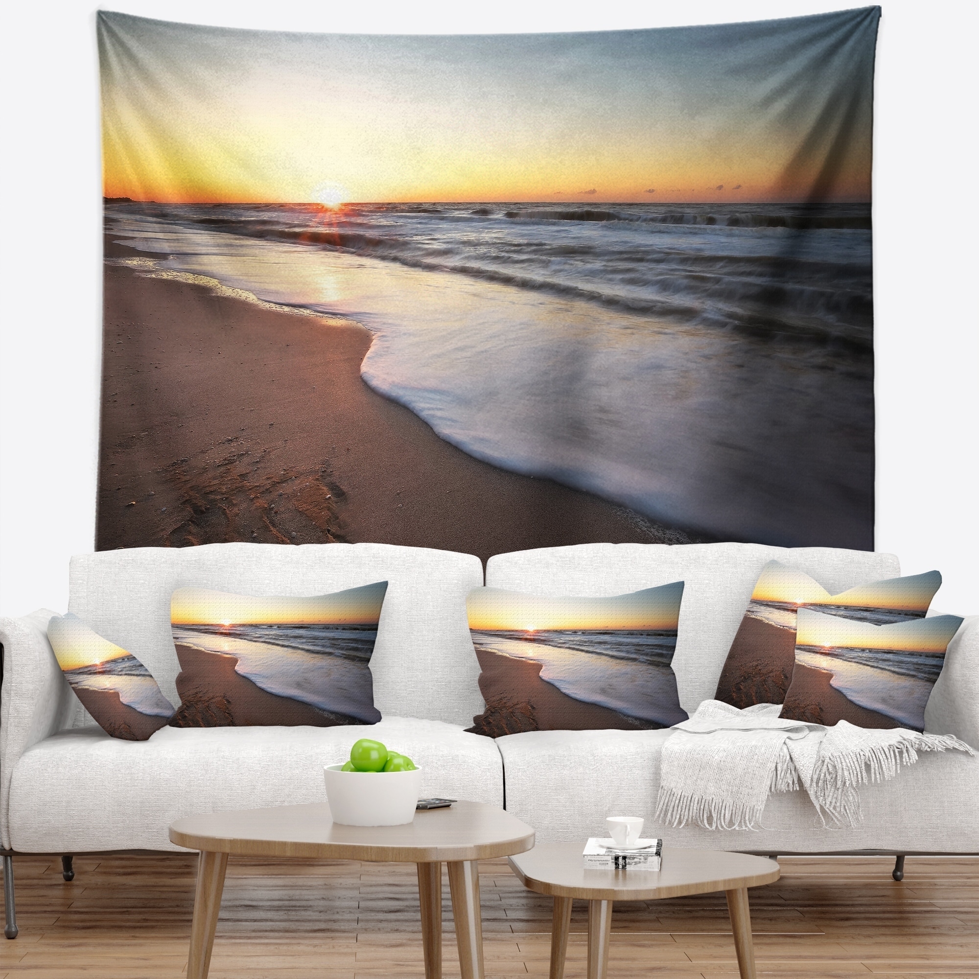Designart 'Beautiful Sunrise over Blue Sea' Seashore Wall Tapestry