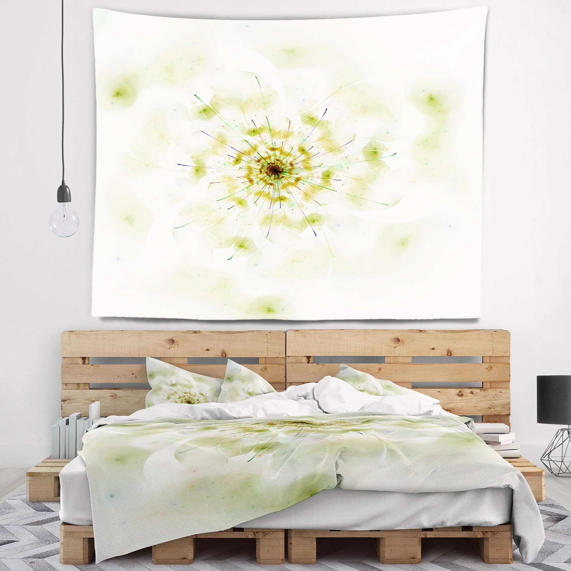 Designart 'Full Bloom Fractal Flower in White' Flower Wall Tapestry
