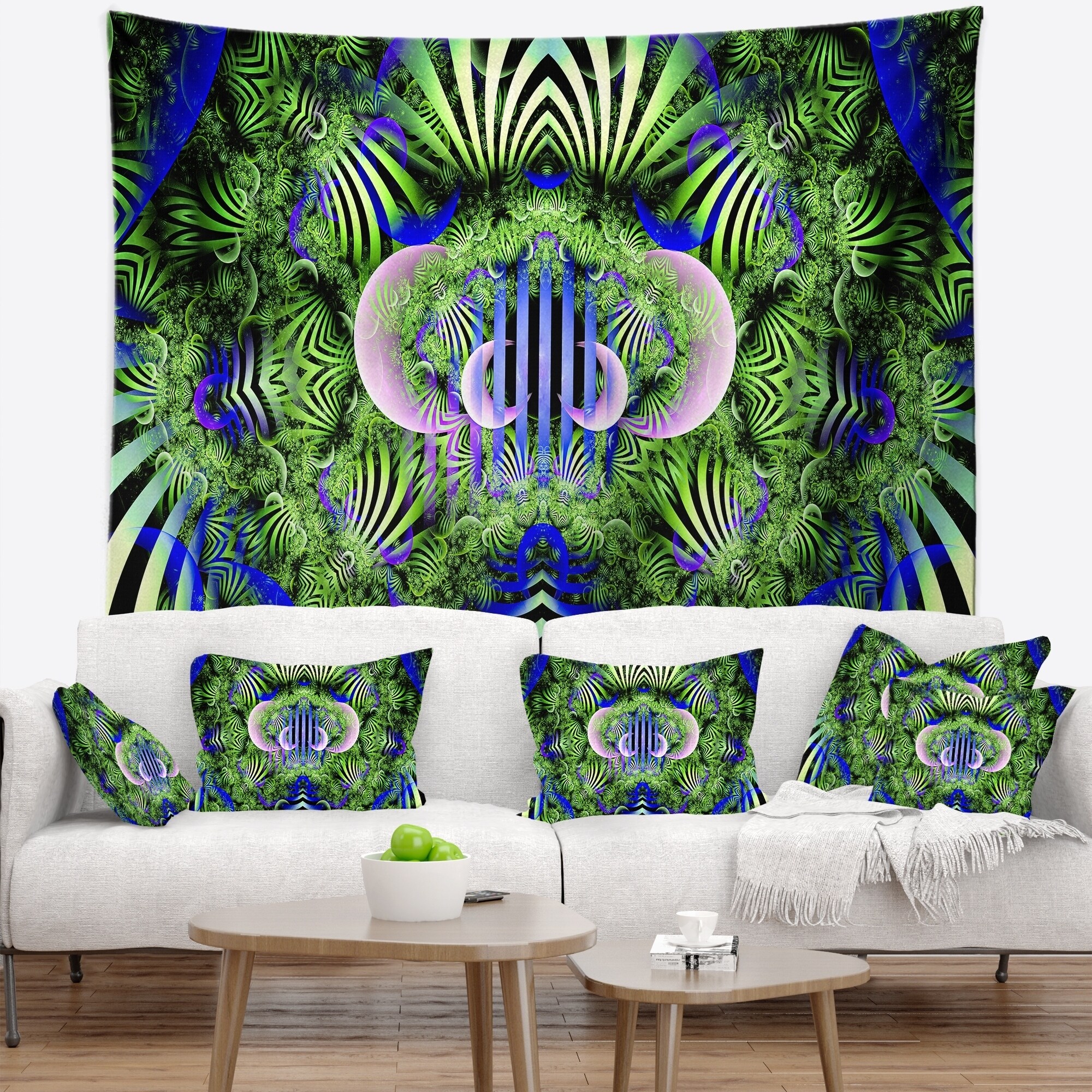 Designart 'Green Magical Fairy Pattern' Floral Wall Tapestry