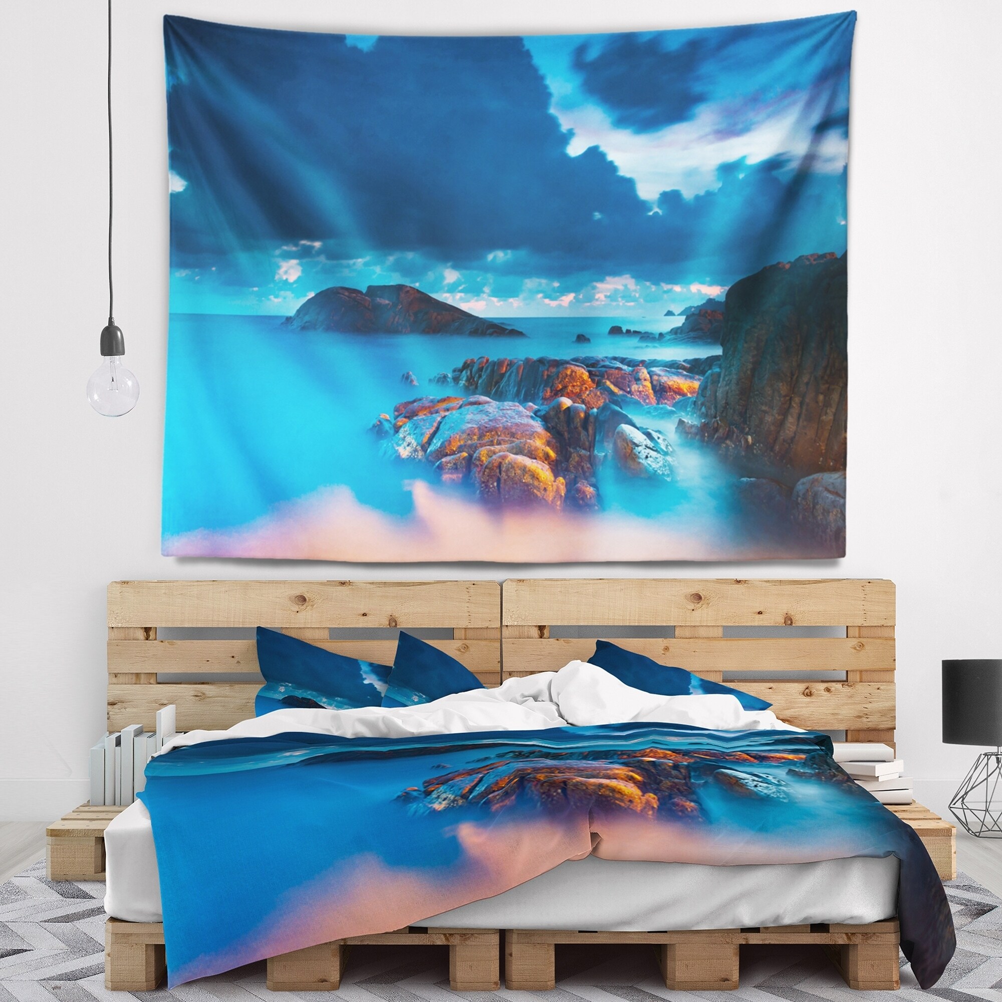 Designart 'Rocky Sea with Long Exposure' Seashore Photo Wall Tapestry