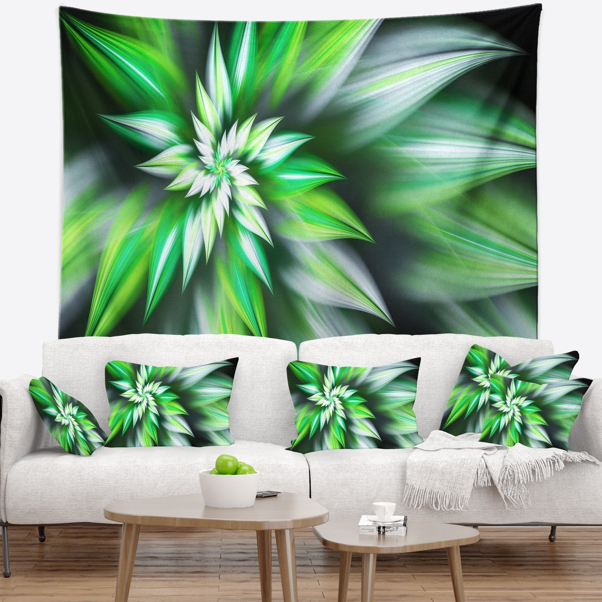 Designart 'Dance of Green Exotic Flower' Floral Wall Tapestry