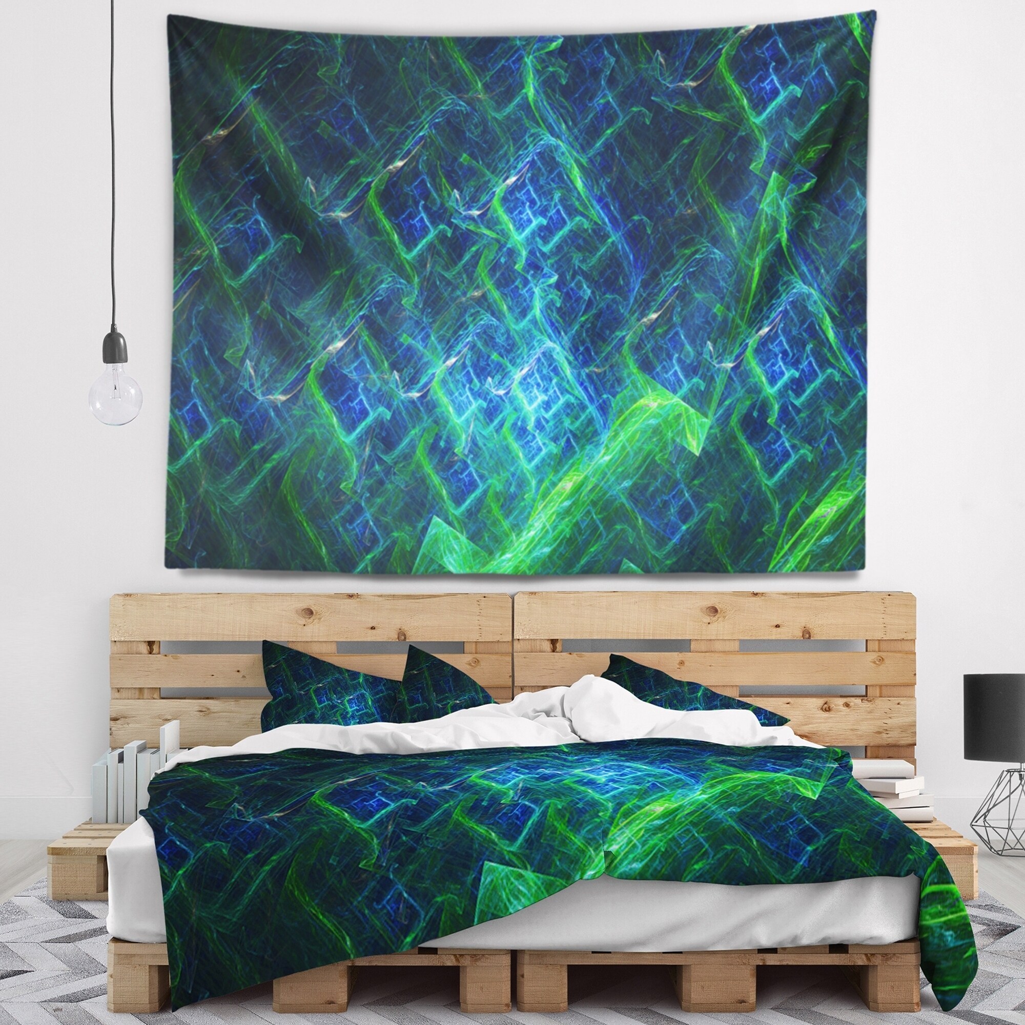 Designart 'Green Blue Electric Lightning' Abstract Wall Tapestry