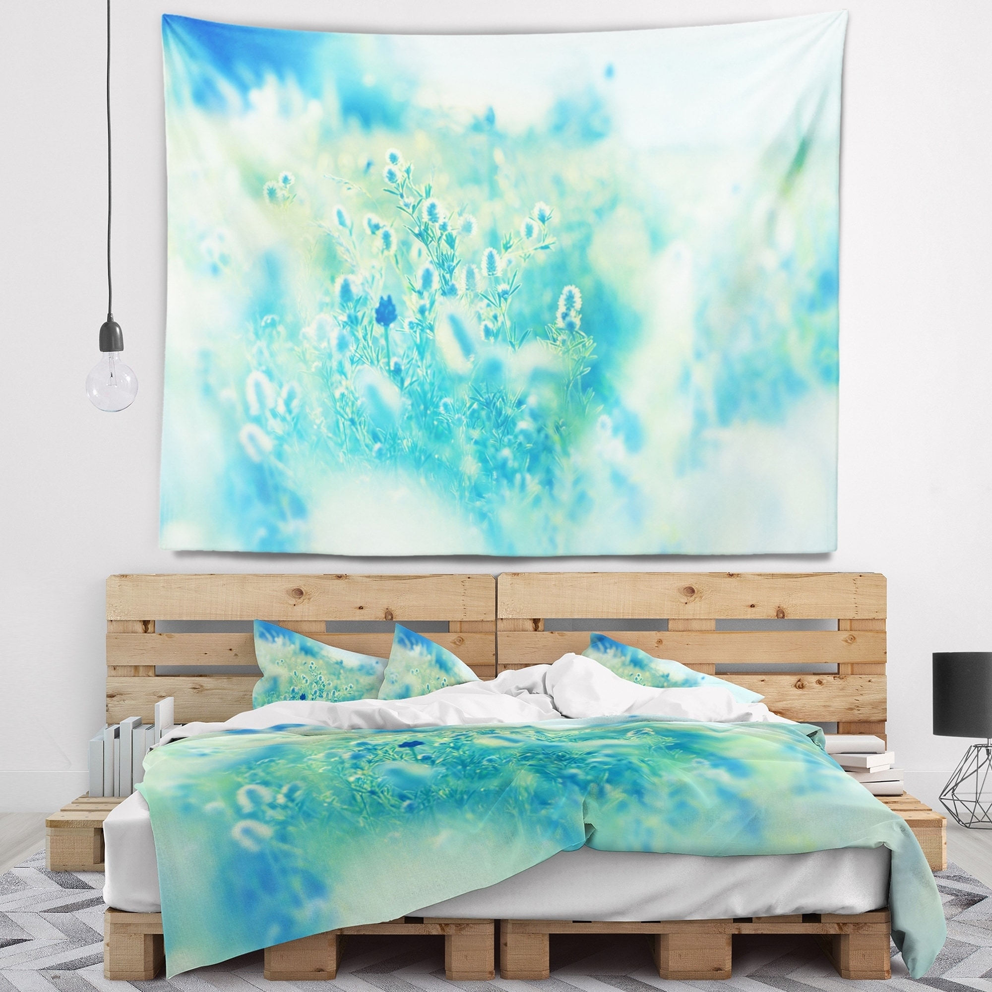 Designart 'Light Blue Mountain Plain Flowers' Floral Wall Tapestry