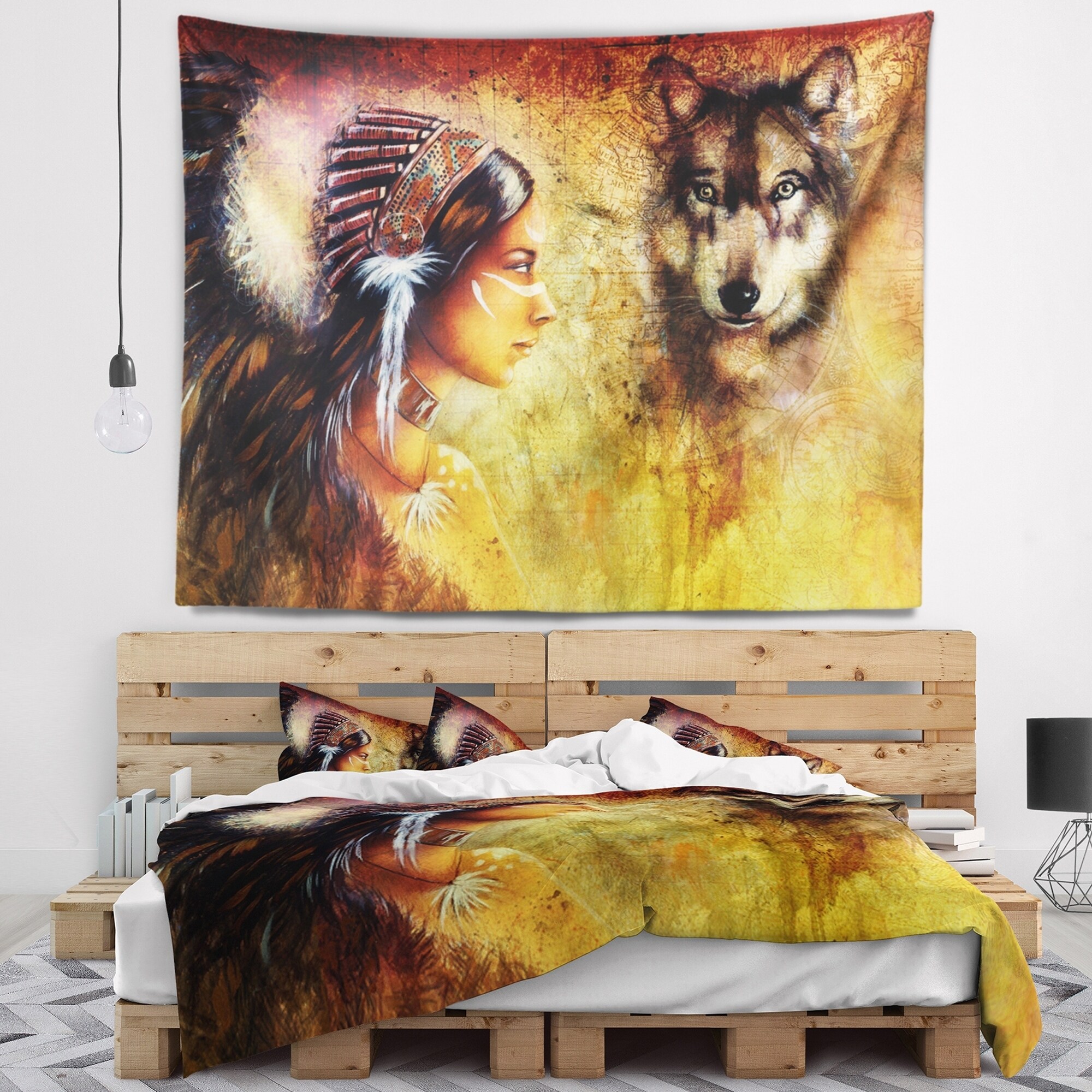 Designart 'Woman with Wolf' Portrait Wall Tapestry