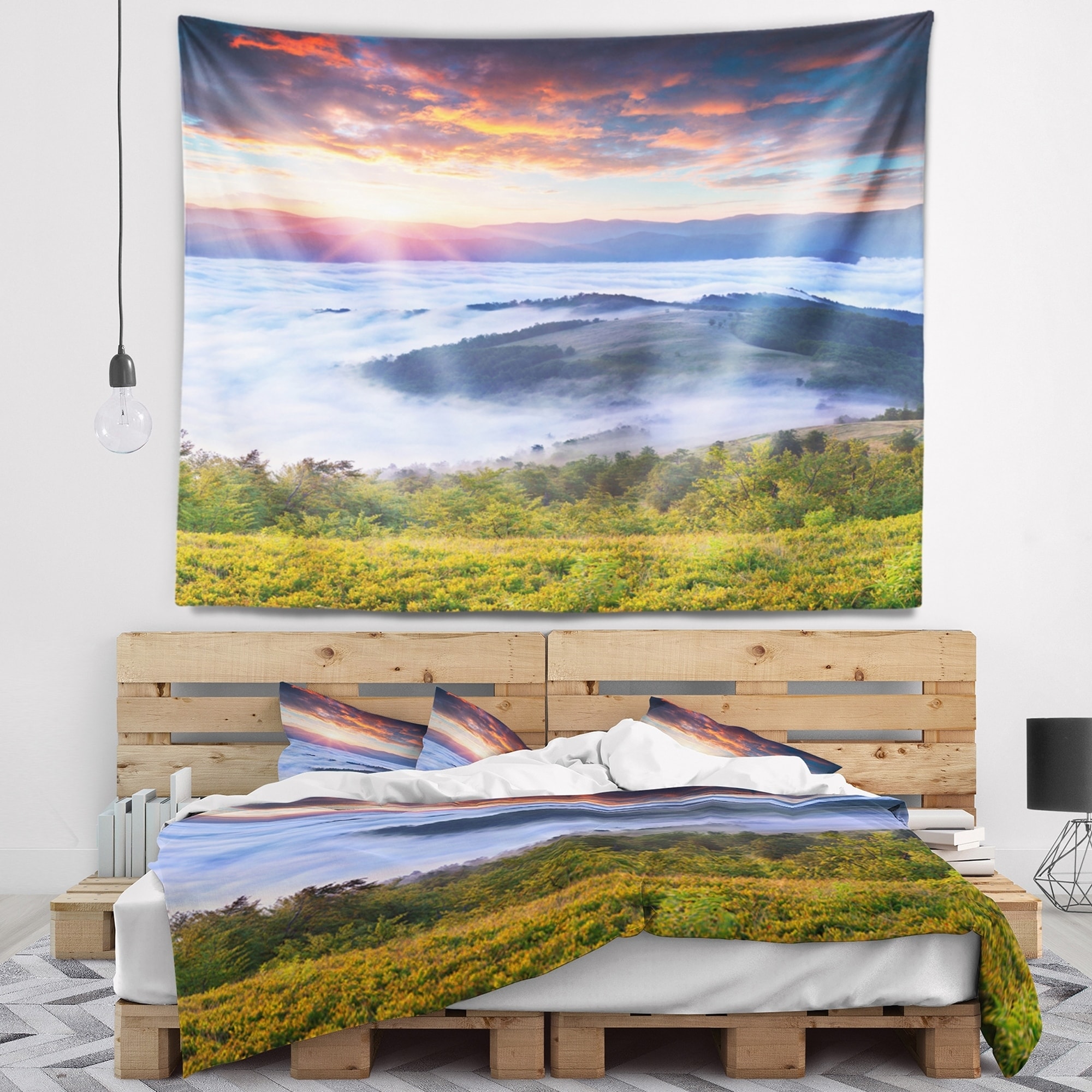 Designart 'Colorful Sunrise Over Foggy Waters' Landscape Photography Wall Tapestry