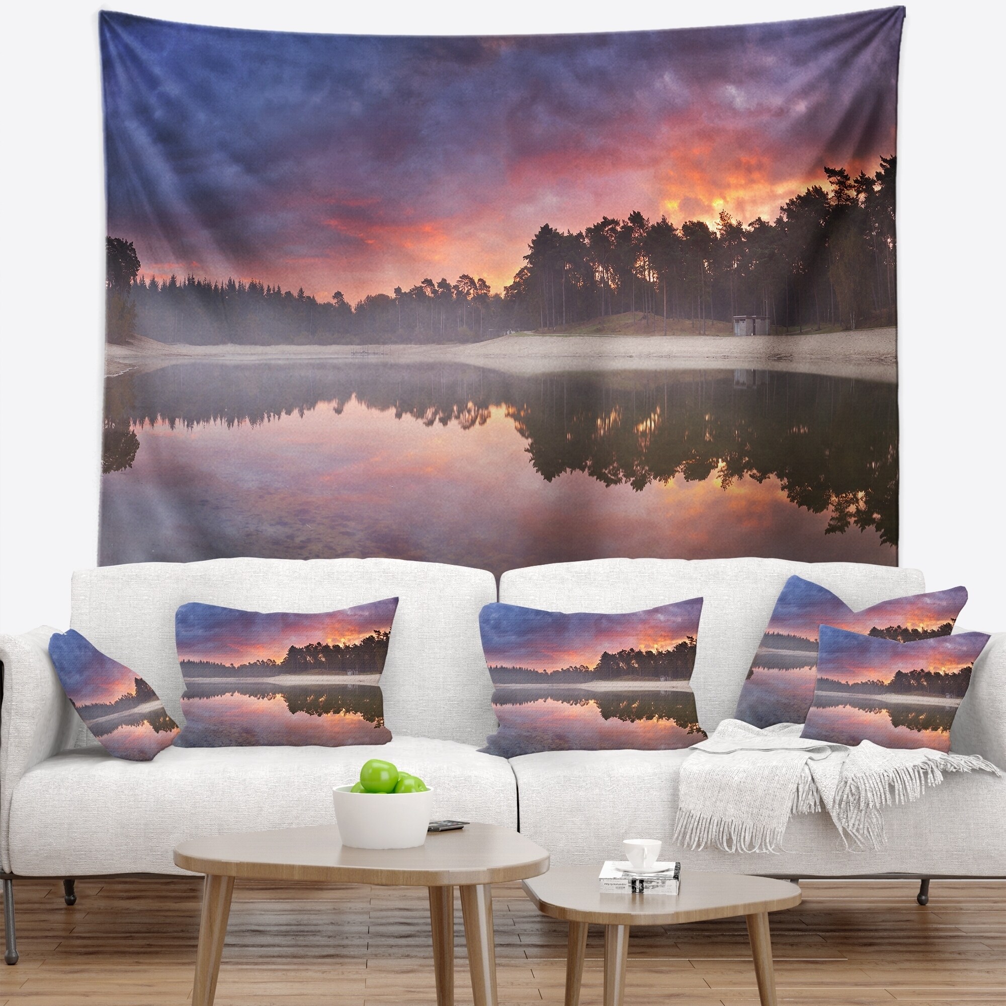 Designart 'Quiet Lake Mirroring the Sky' Landscape Wall Tapestry