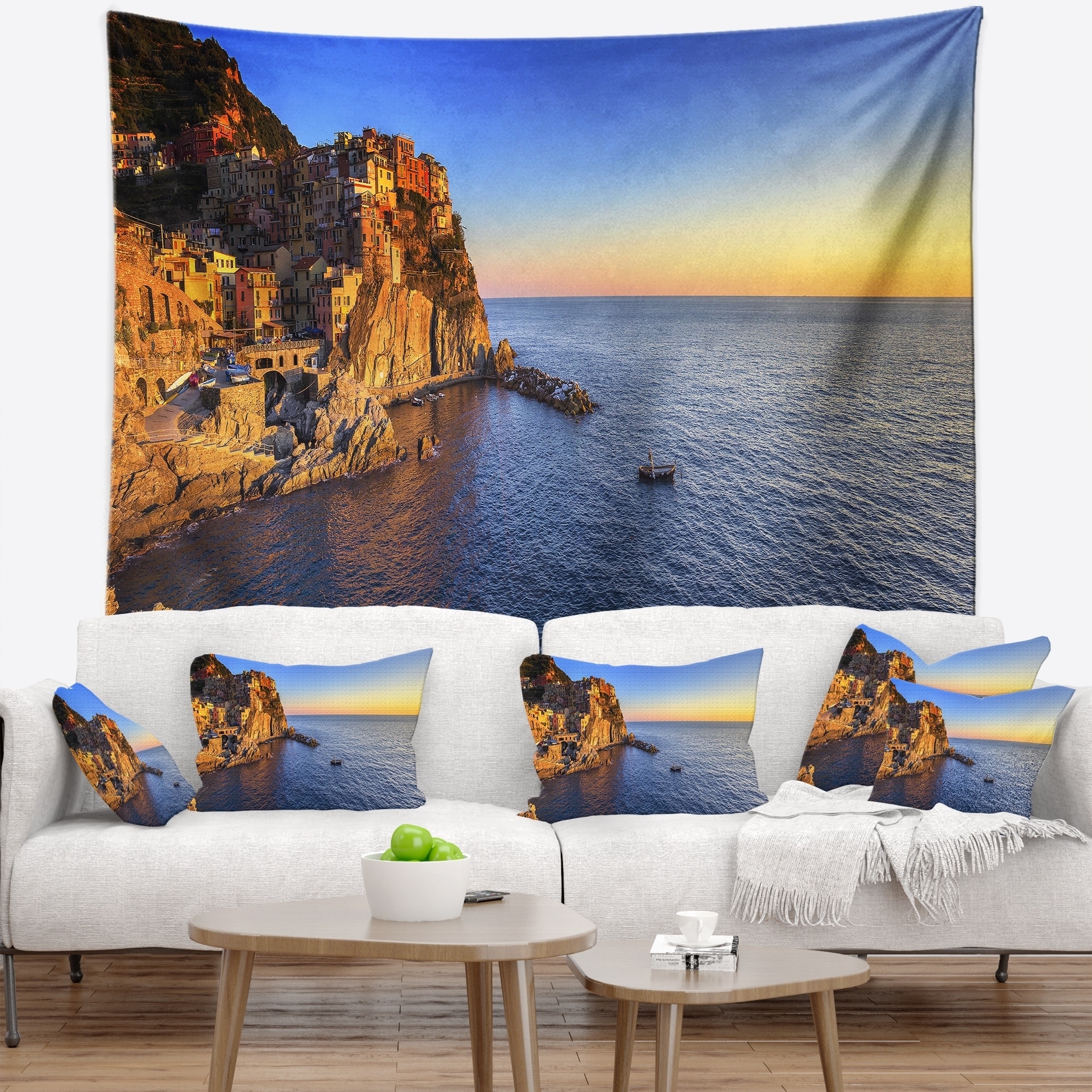 Designart 'Manarola Village Beach Panorama' Landscape Wall Wall Tapestry