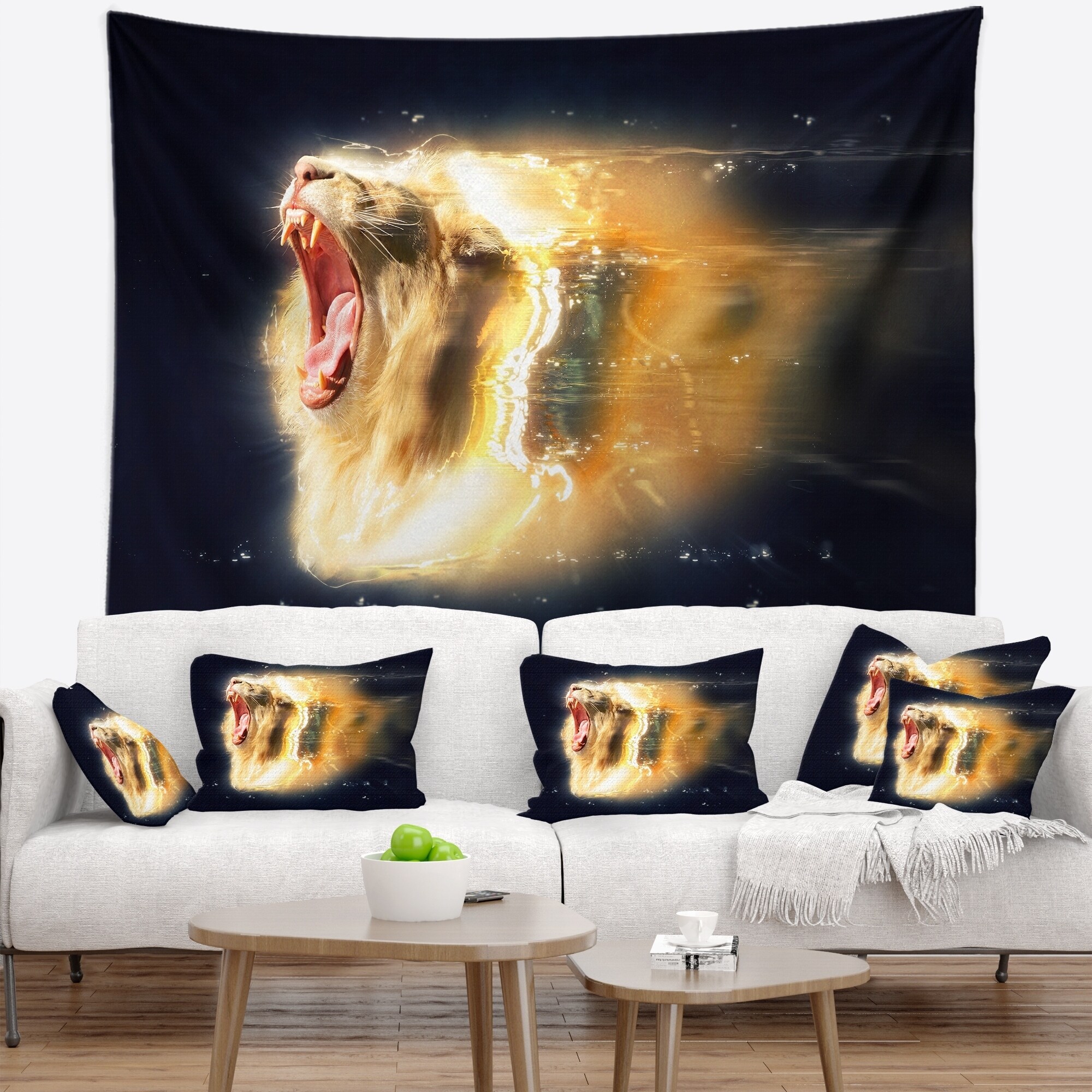 Designart 'White Lion with Open Jaws' Animal Wall Tapestry