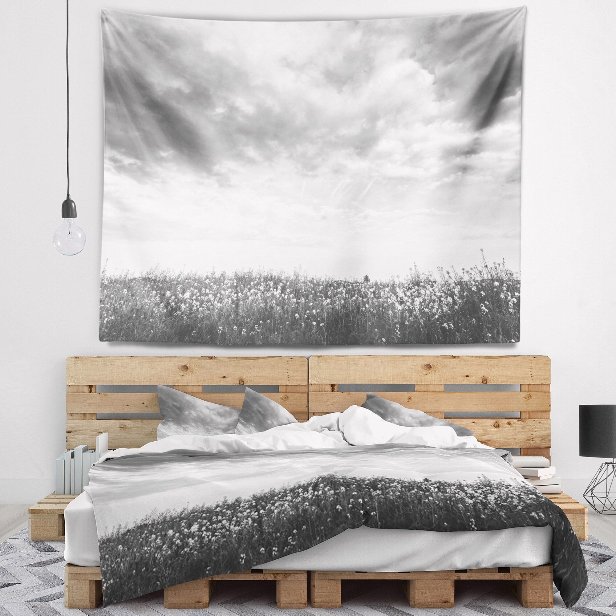 Designart 'Rapeseed Garden in Black and White' Landscape Wall Tapestry