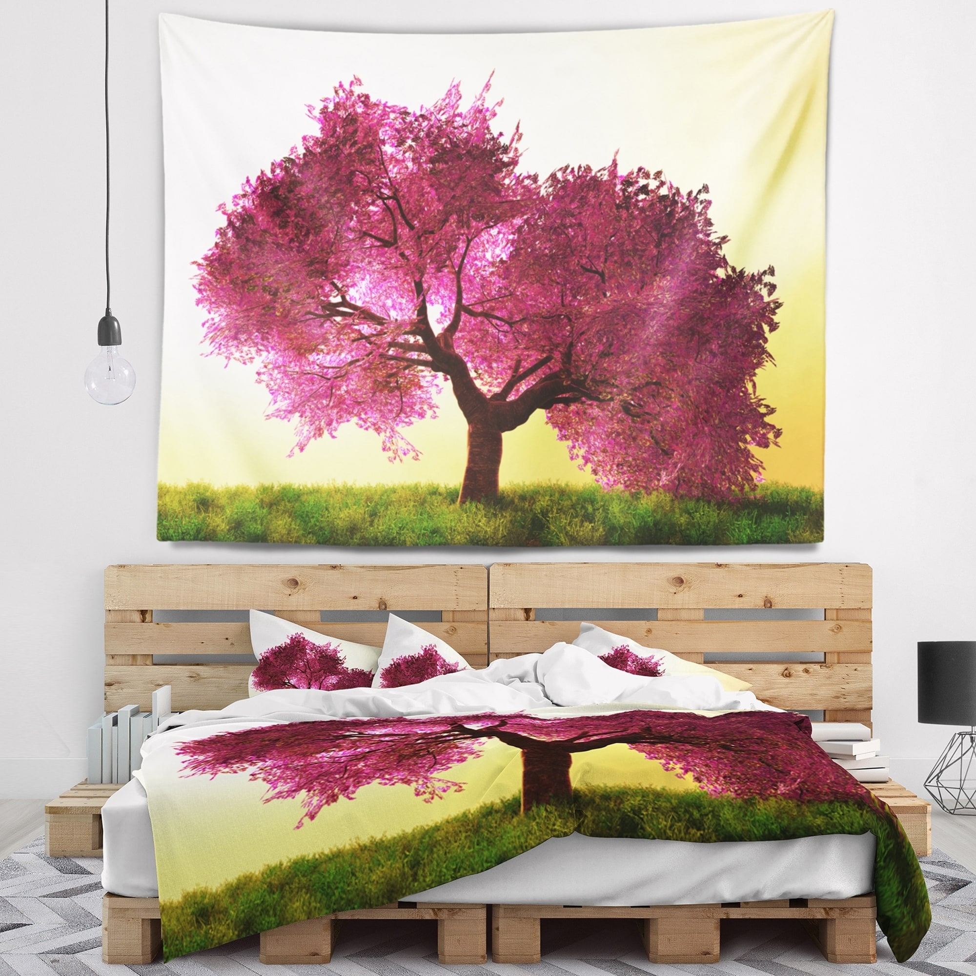 Designart 'Cherry Blossom in Beautiful Garden' Landscape Wall Tapestry