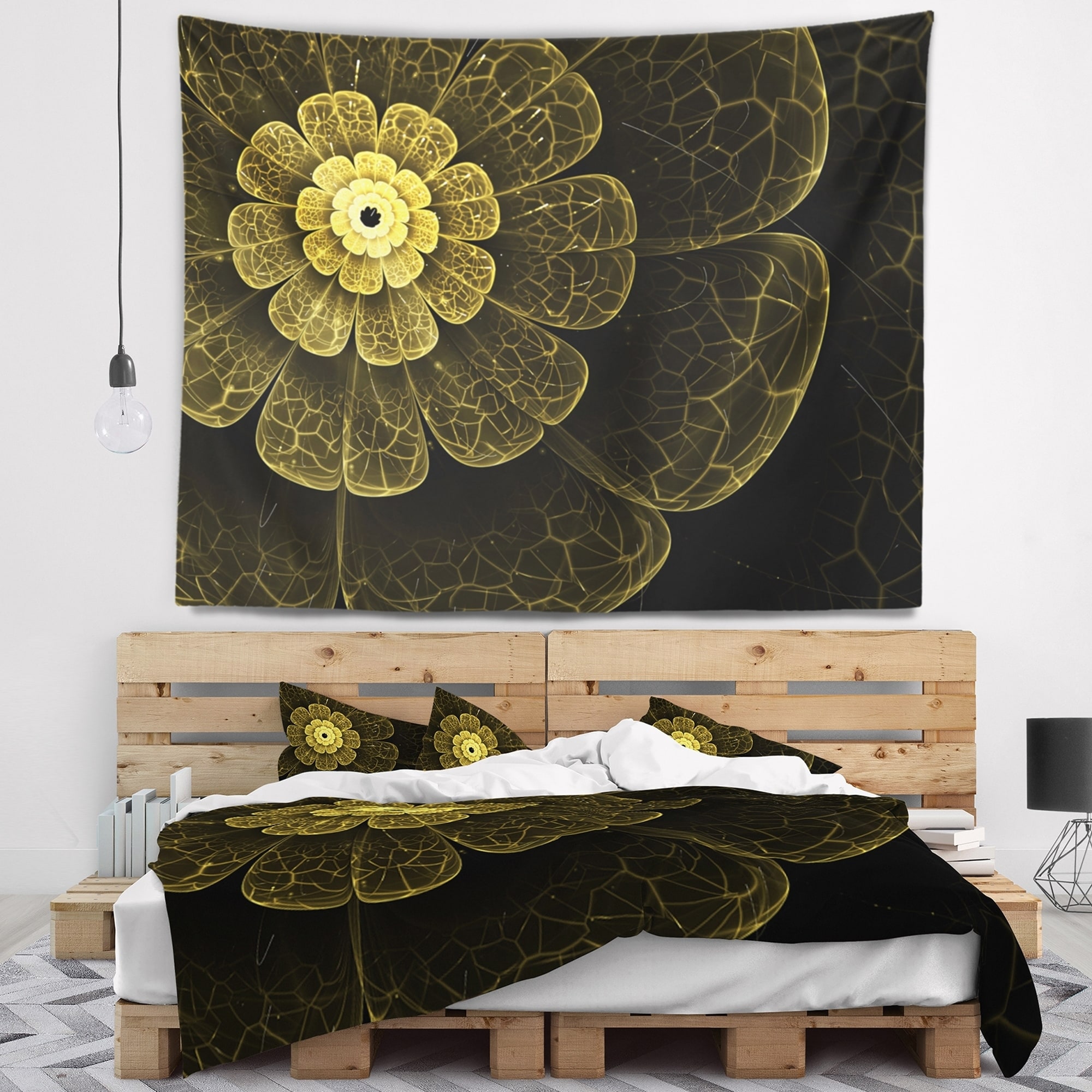 Designart 'Dance of Yellow Exotic Flower' Floral Wall Tapestry
