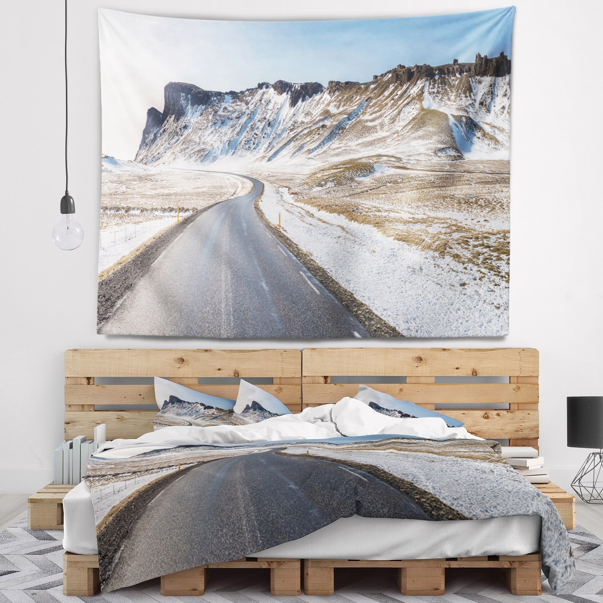 Designart 'Range Road in Winter Mountains' Landscape Wall Tapestry