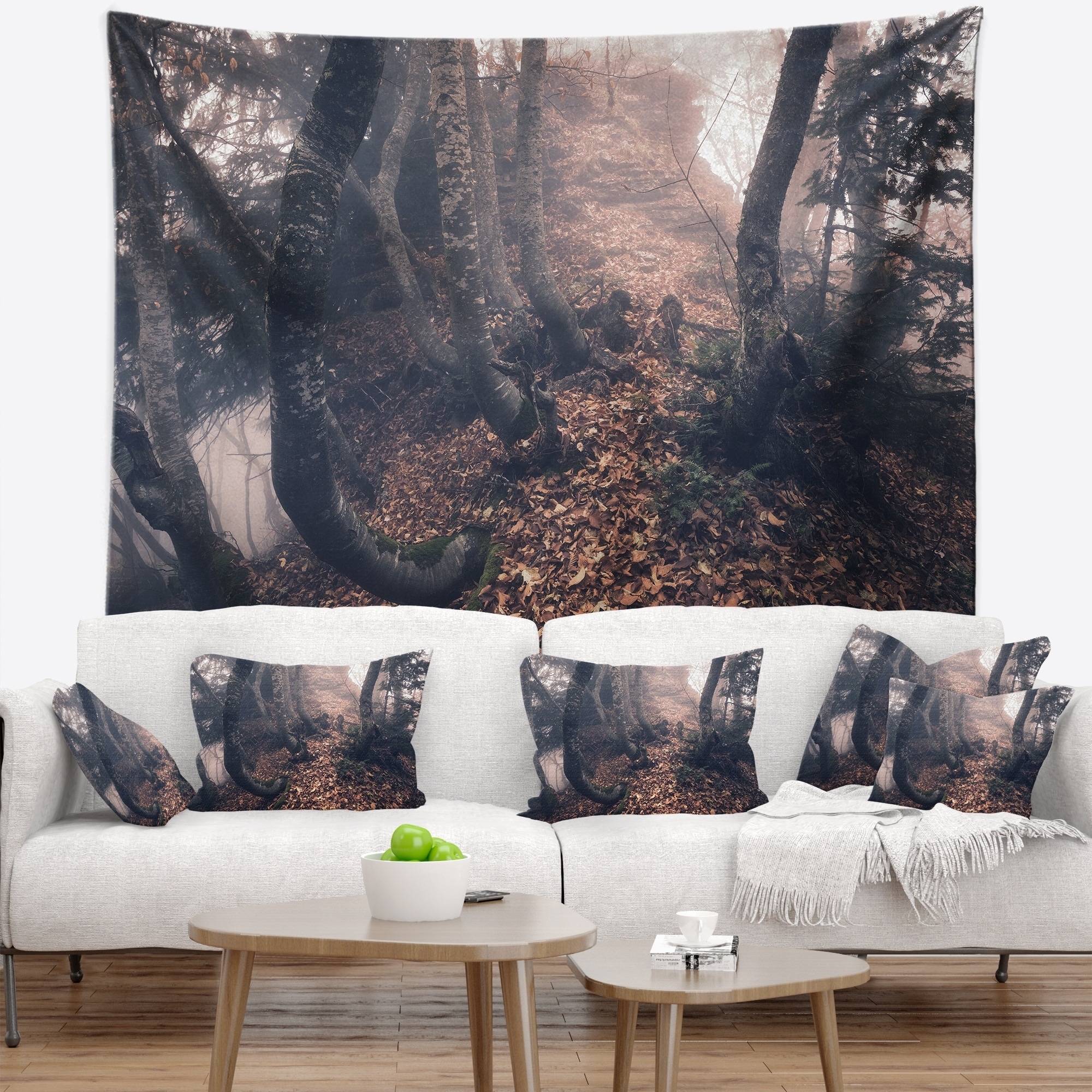 Designart 'Autumn Foggy Forest Trees' Landscape Photography Wall Tapestry