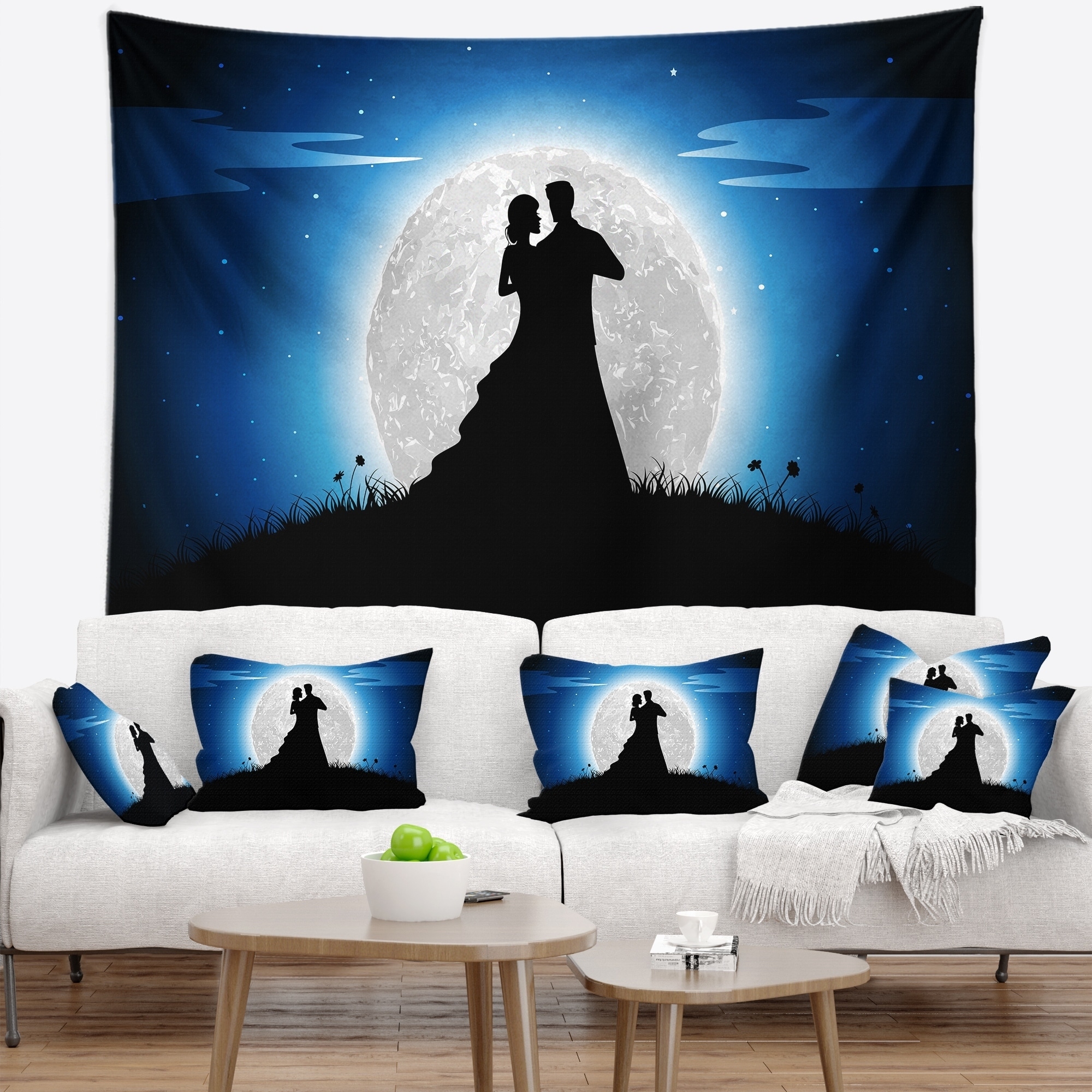 Designart 'Couple Embrace in Night' Romantic Wall Tapestry