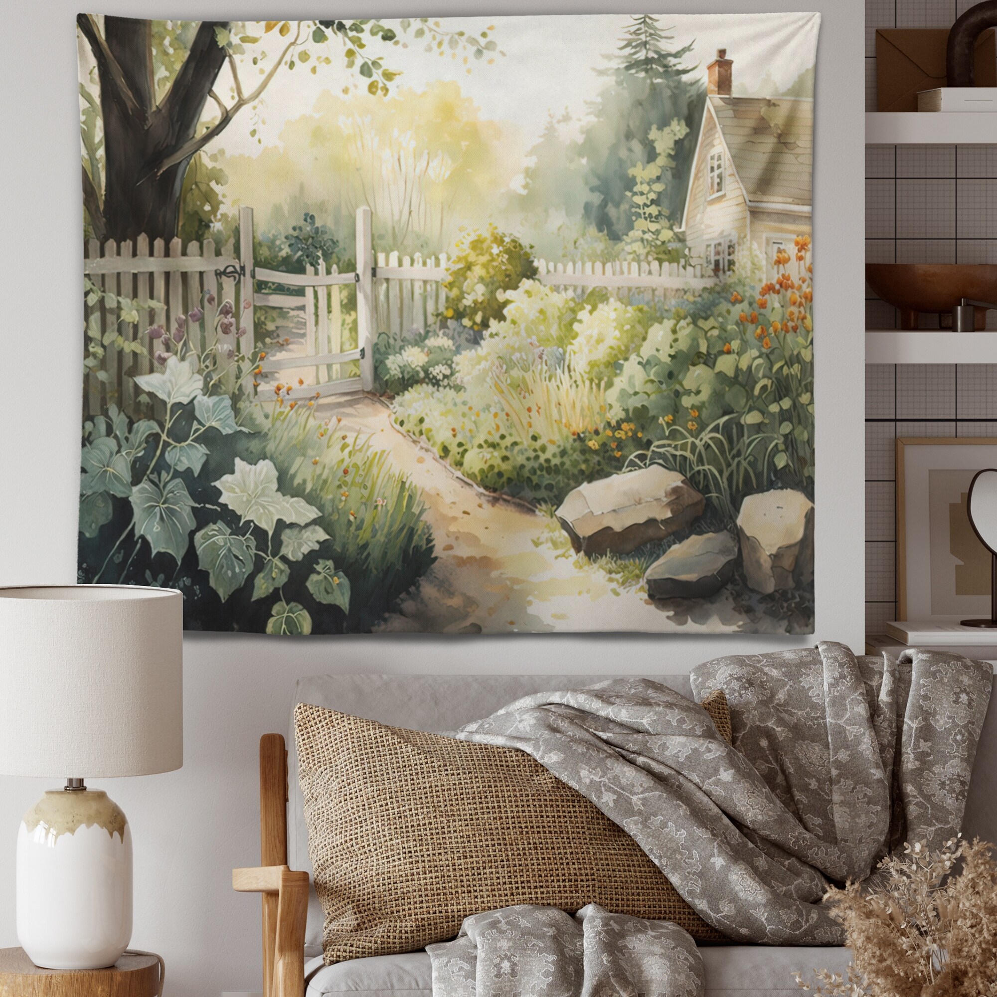 Designart 'Farm Fresh Garden III' Cottage Landscape Wall Tapestry