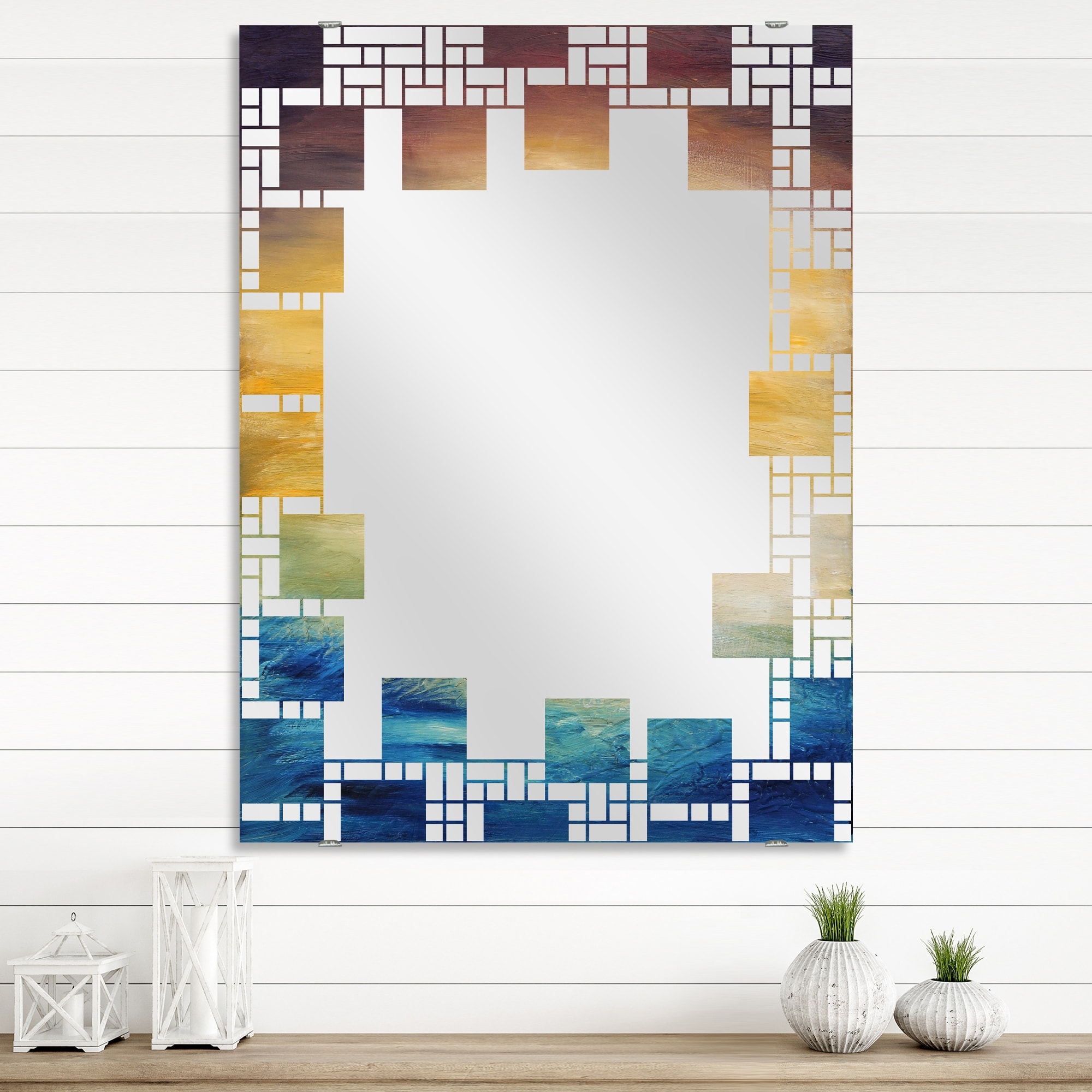 Designart 'Abstract Water Sunset' Abstract Printed Wall Mirror