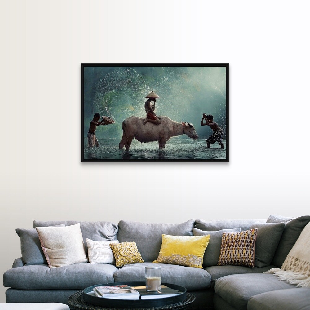 "Water Buffalo" Black Float Frame Canvas Art