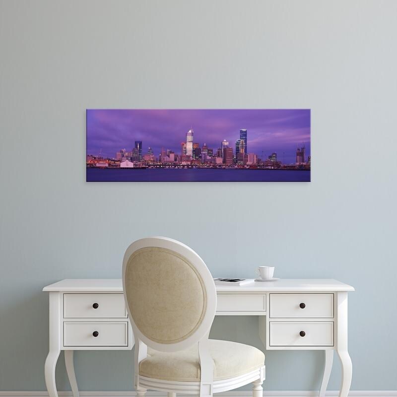Easy Art Prints Panoramic Image 'Skylines at the waterfront, Seattle, Elliott Bay, Washington State, USA' Canvas Art