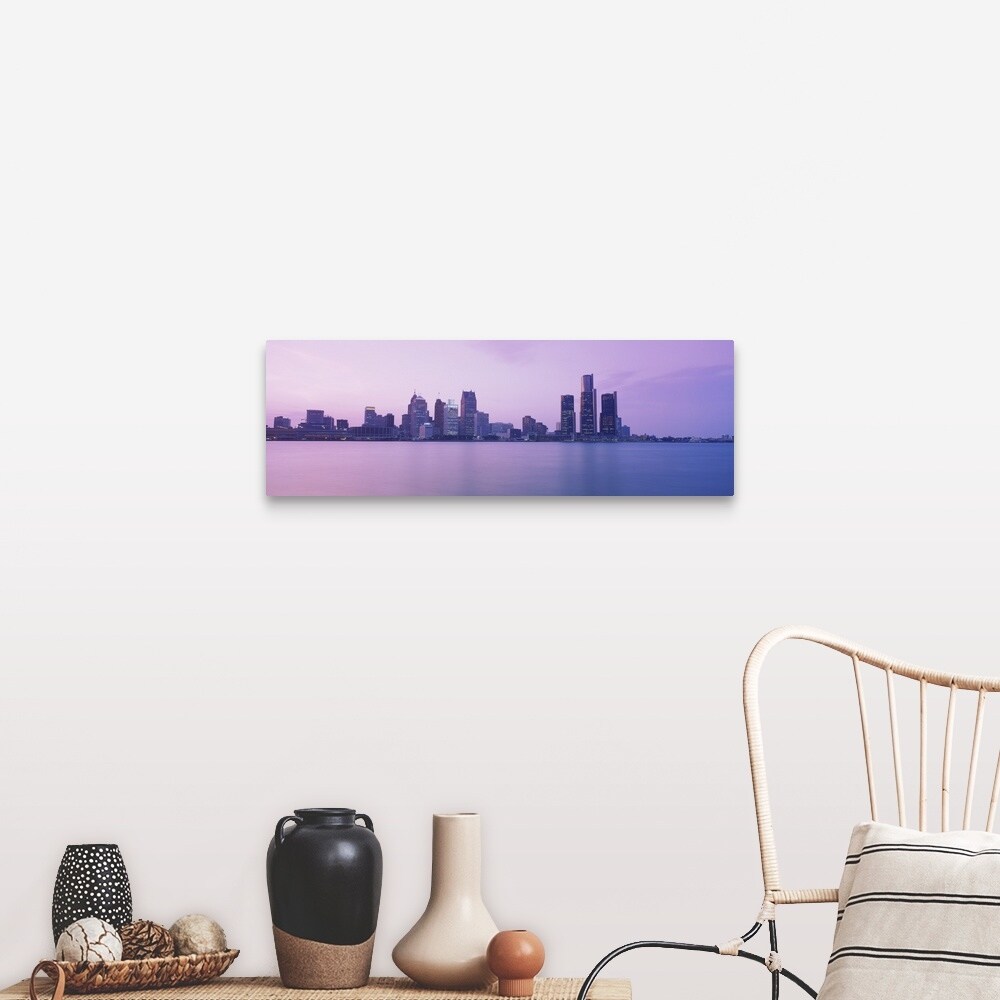 Easy Art Prints Panoramic Image 'Buildings at waterfront during dawn, Detroit, Wayne County, Michigan' Canvas Art
