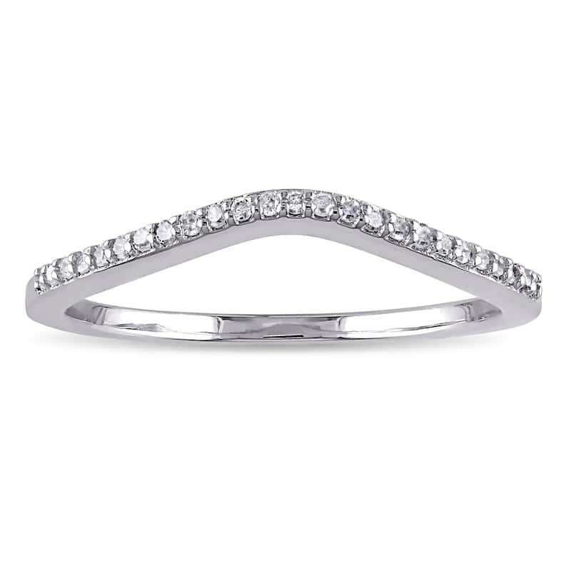 Miadora 10k White Gold 1/10ct TDW Diamond Contour Stackable Anniversary-style Wedding Band Ring