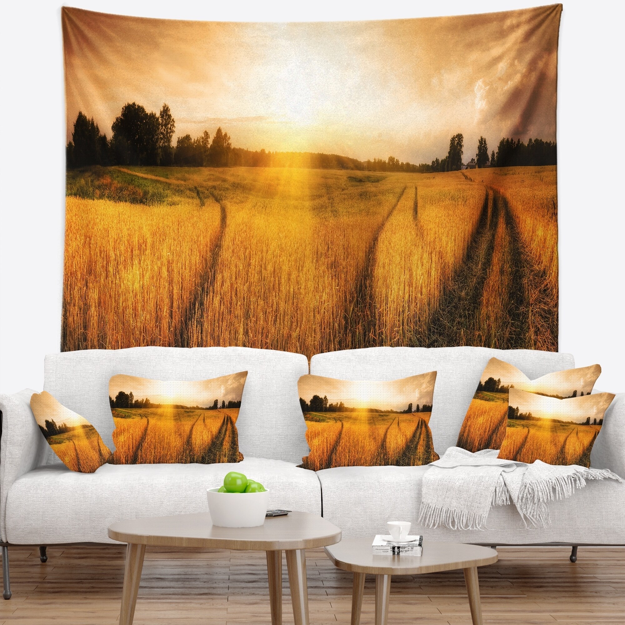 Designart 'Wheat Field at Sunset Panorama' Photography Wall Tapestry