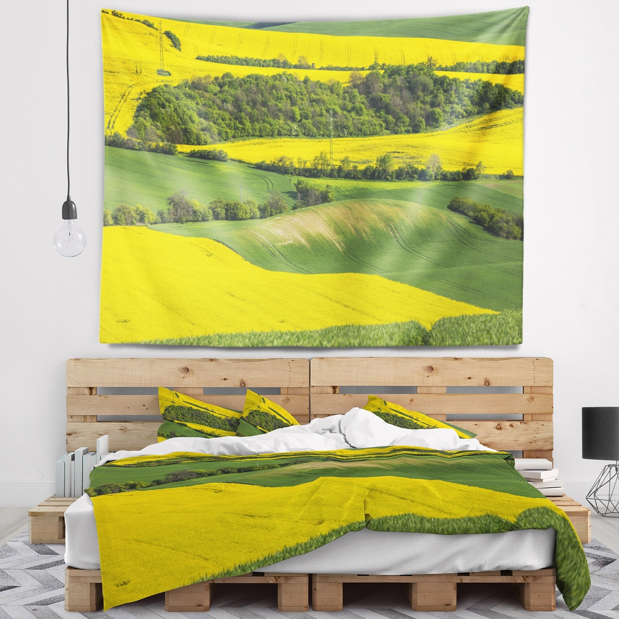 Designart 'Rapeseed Fields and Green Wheat' Landscape Wall Tapestry