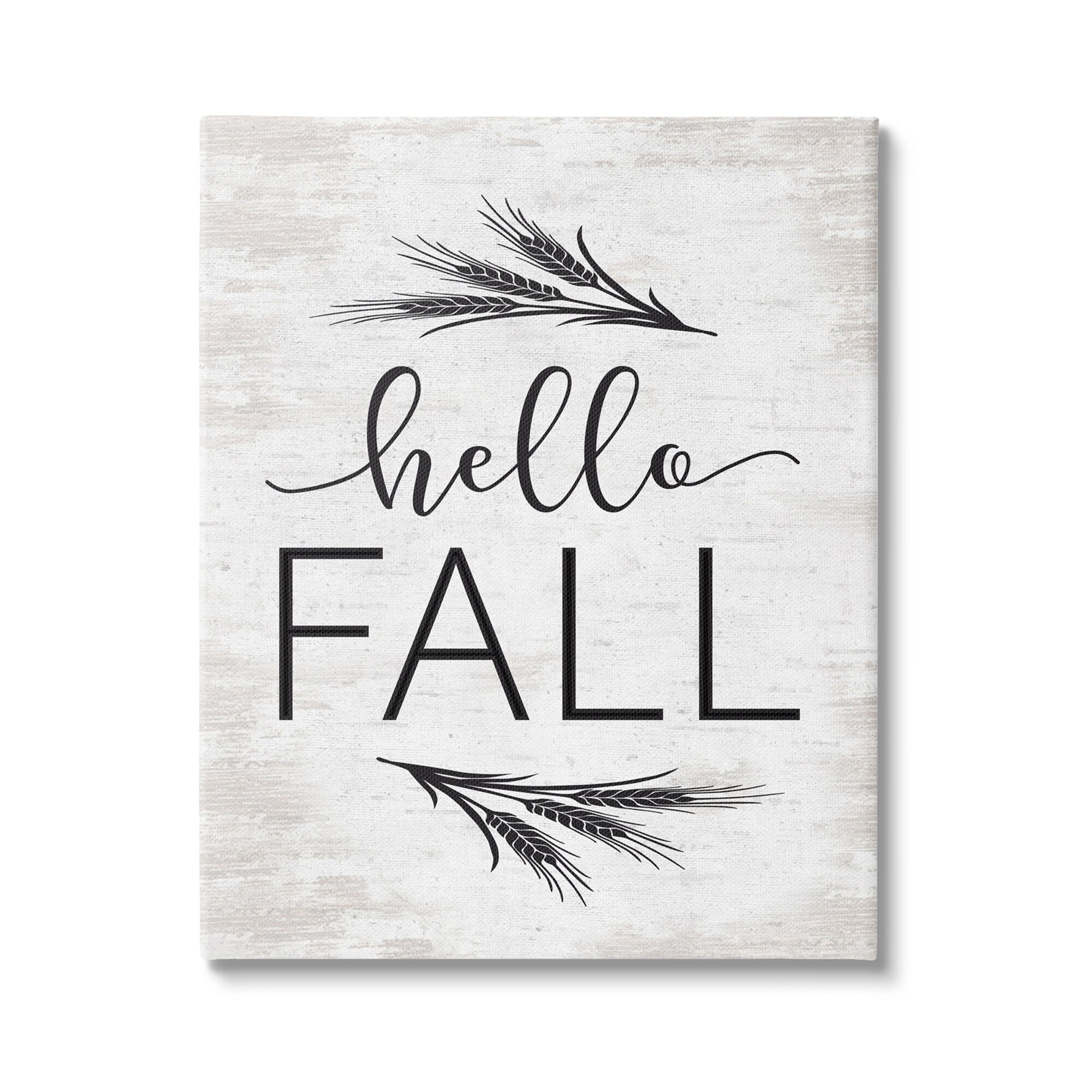 Stupell Industries Hello Fall Rustic Calligraphy Wheat Sprigs Botanical Border Canvas Wall Art - Black