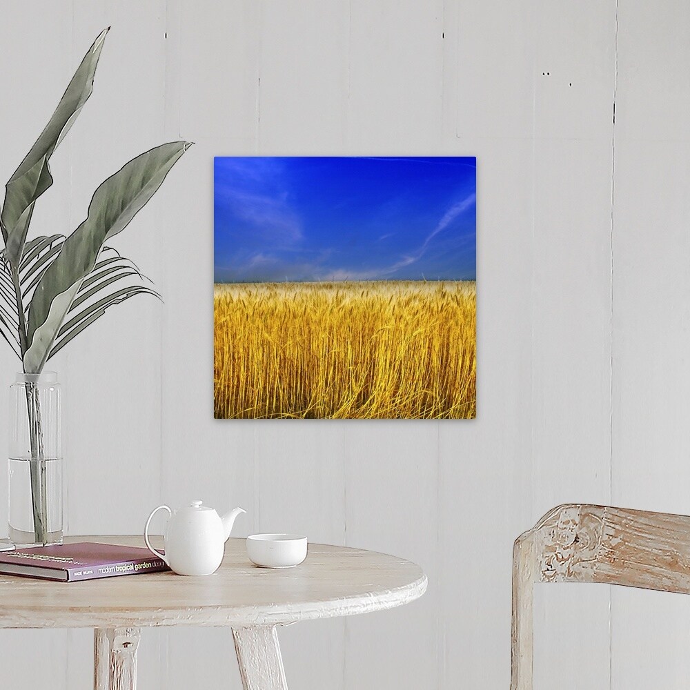 "Golden Wheat field against blue sky" Canvas Wall Art