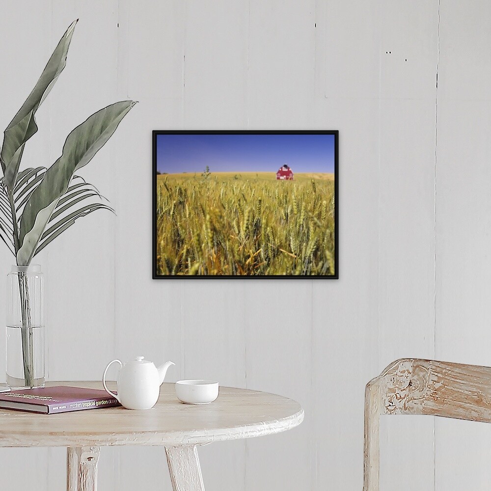 "Red barn in a wheat field, Palouse, Washington State" Black Float Frame Canvas Art