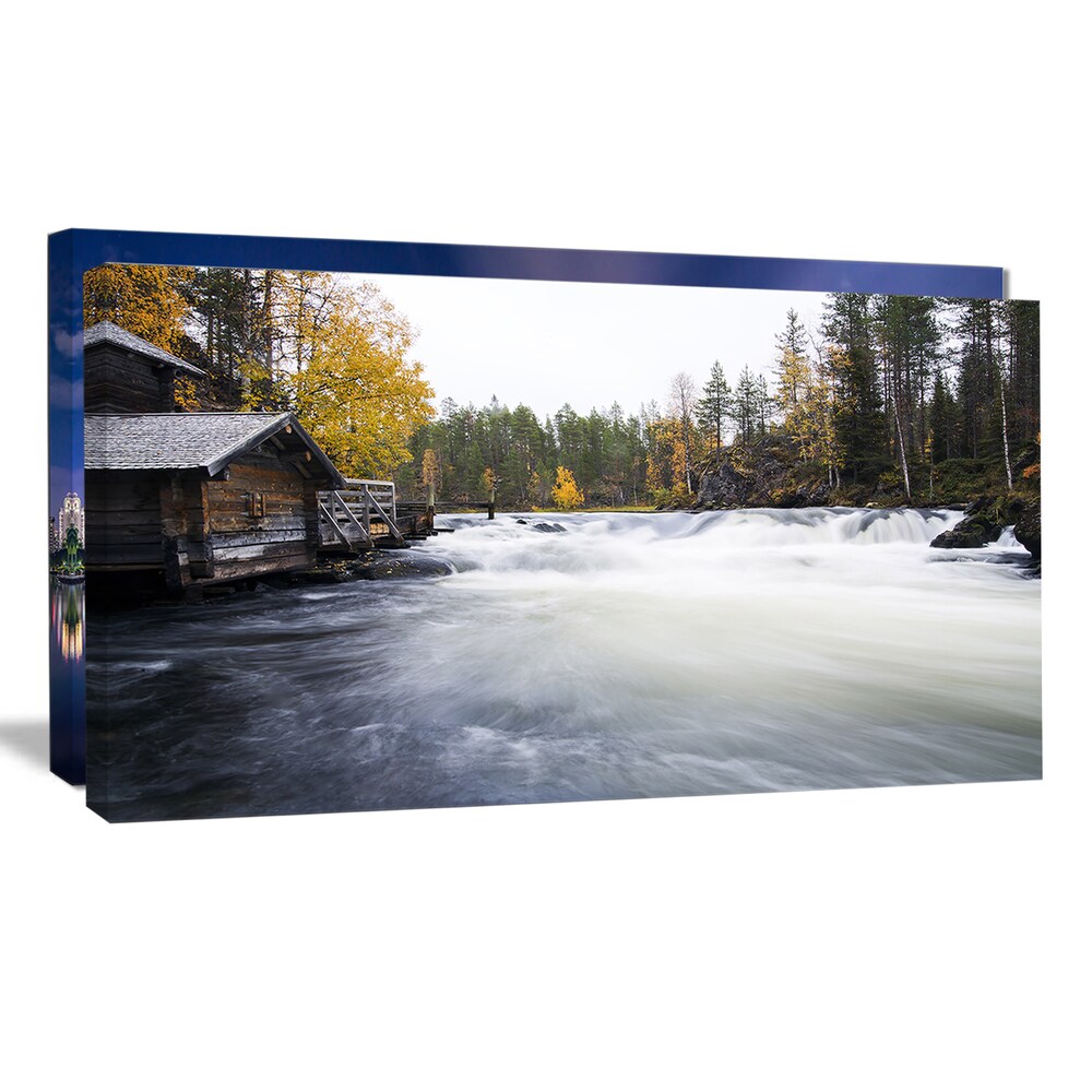 Flowing River and Aged Watermill - Landscape Photo Canvas Print - White