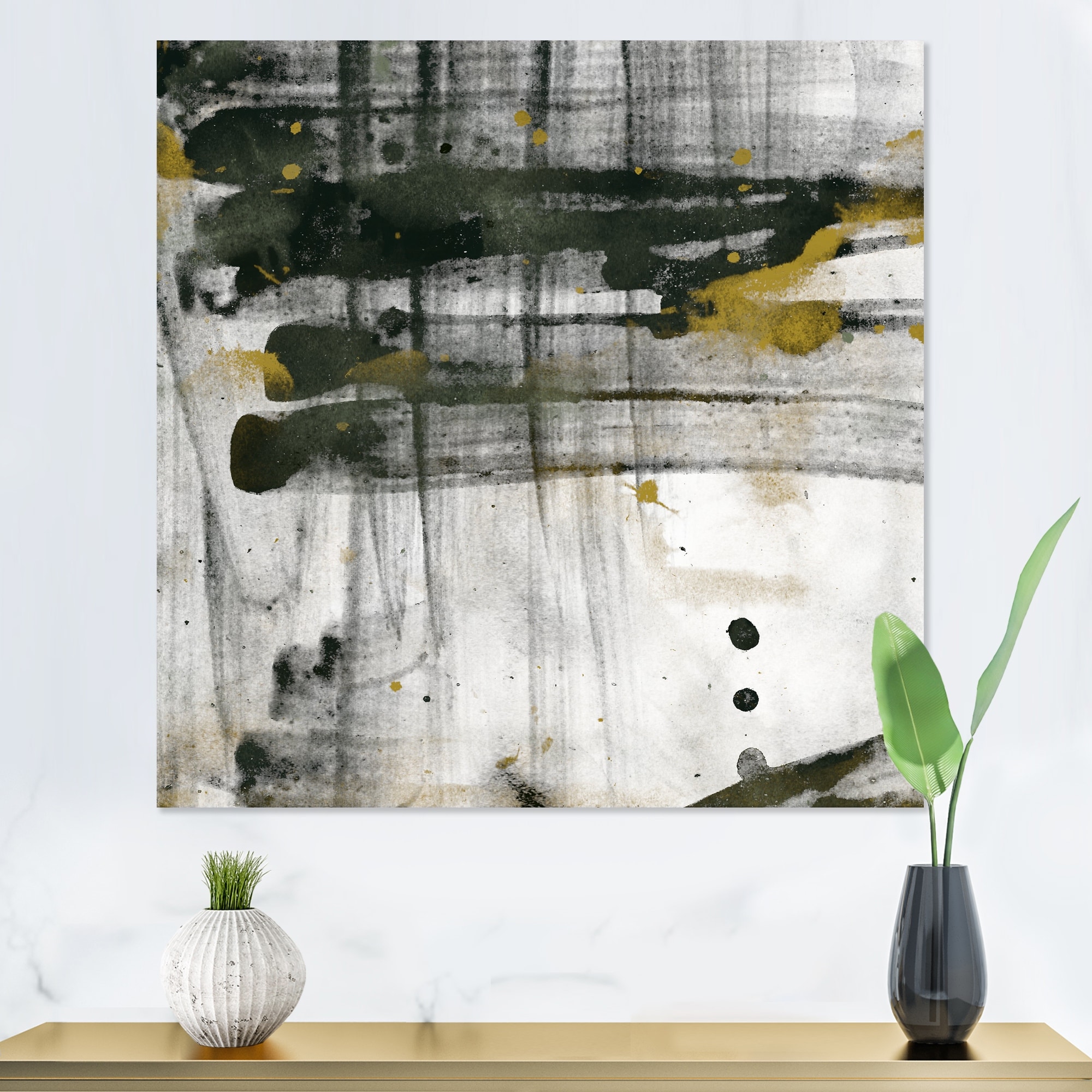 Designart "Black And White Frozen Grunge Art" Modern Canvas artwork