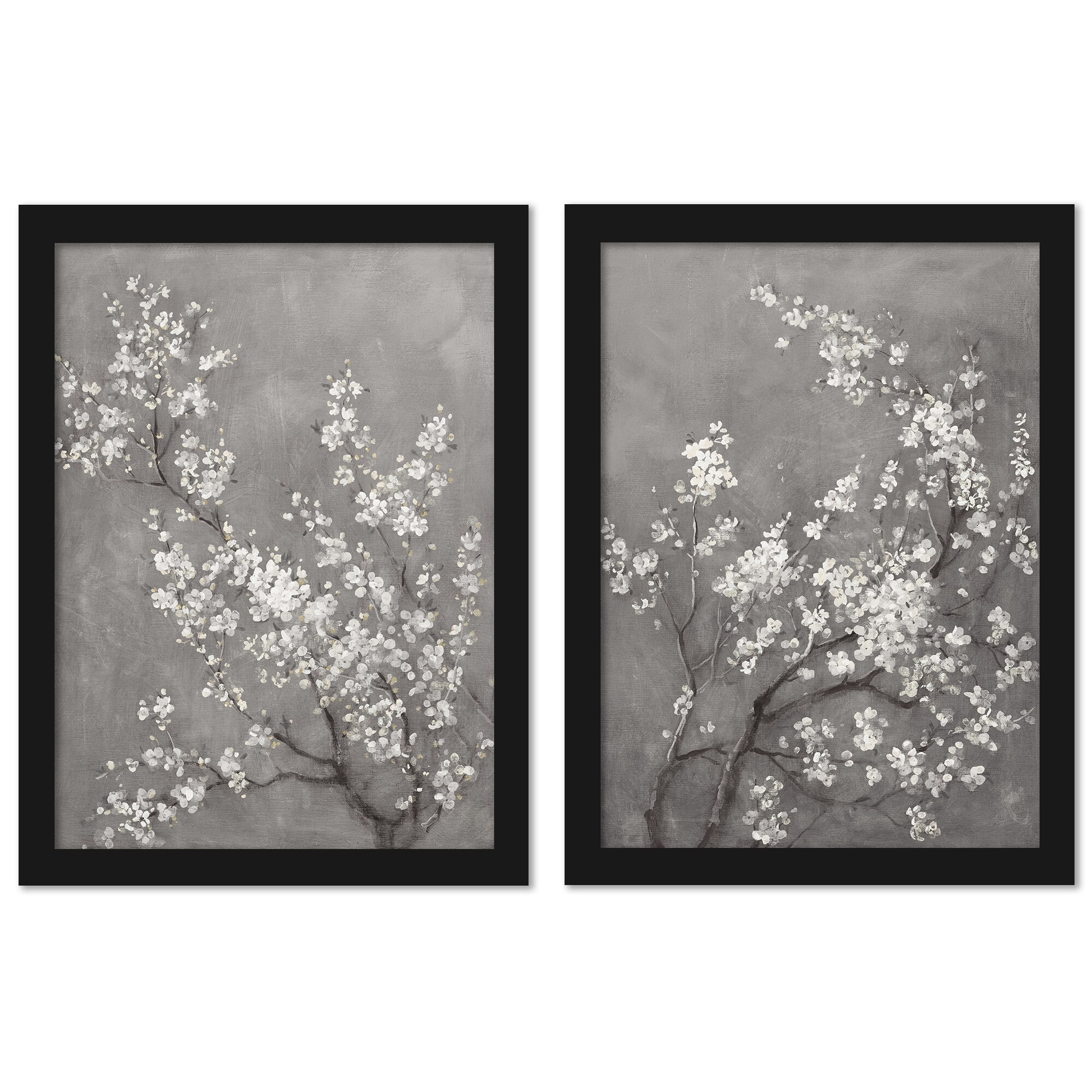 White Cherry Blossoms by Wild Apple - 2 Piece Black Framed Print Set