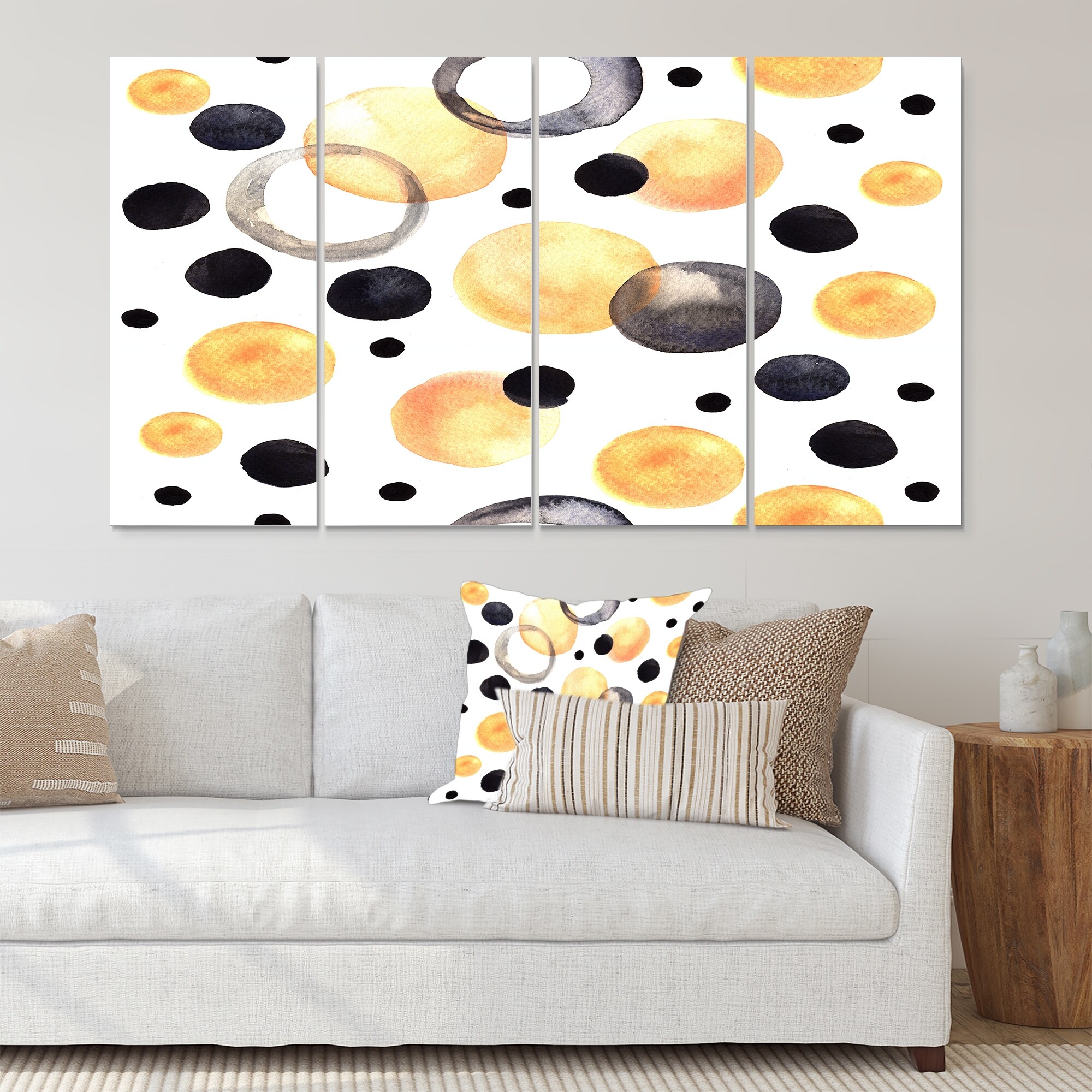 Designart "Black And Yellow Circles on White" Patterned Canvas Wall Art Print - 60x32 - 5 Panels