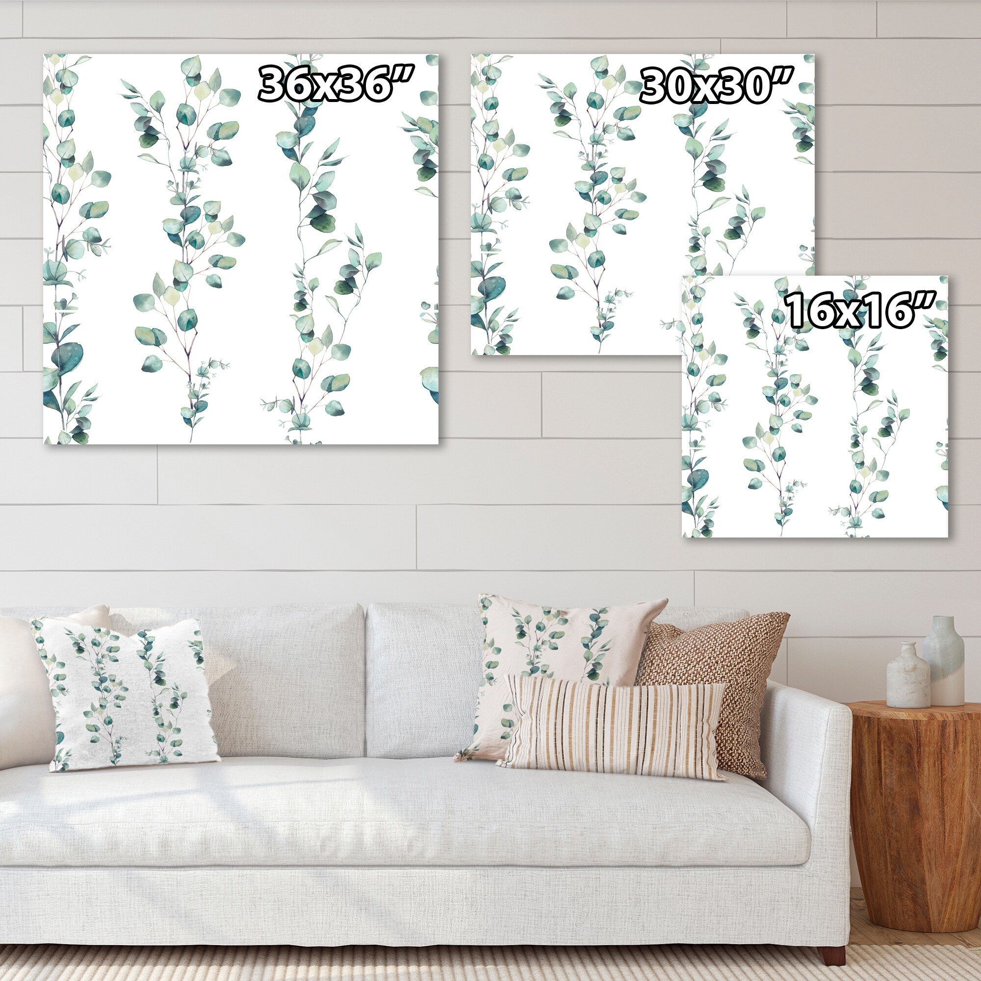 Designart "Eucalyptus Branches on White II" Tropical Canvas Wall Art Print