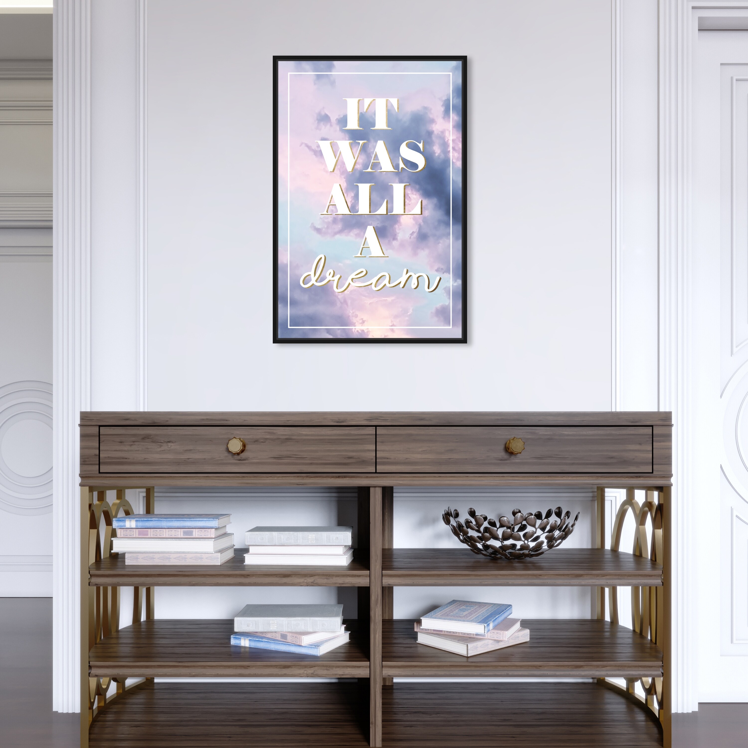 Oliver Gal 'All A Dream Clouds' Typography and Quotes Wall Art Framed Canvas Print Quotes and Sayings - Purple, White