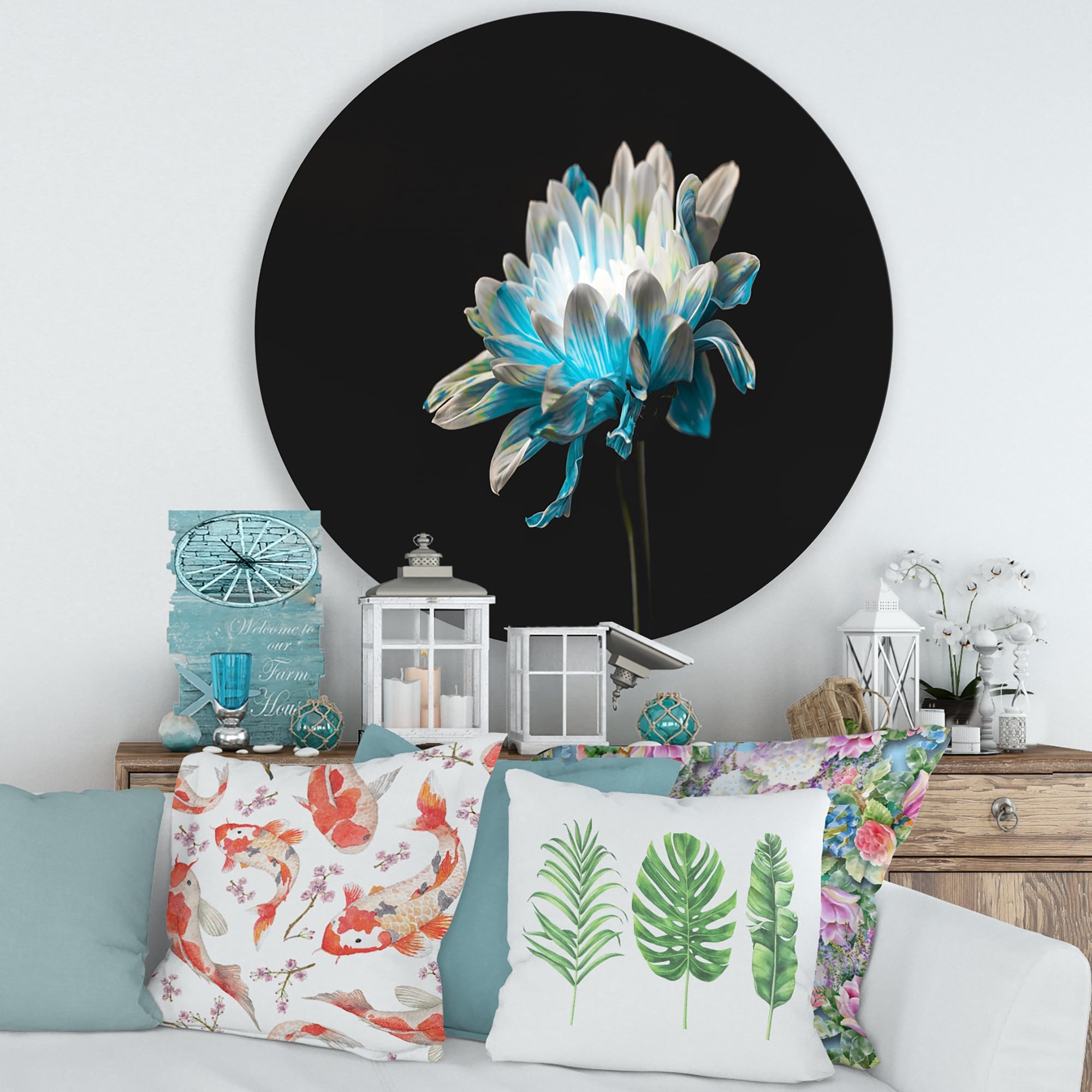 Designart 'Close Up of Pure Blue and White Daisy Flower I' Traditional Metal Circle Wall Art