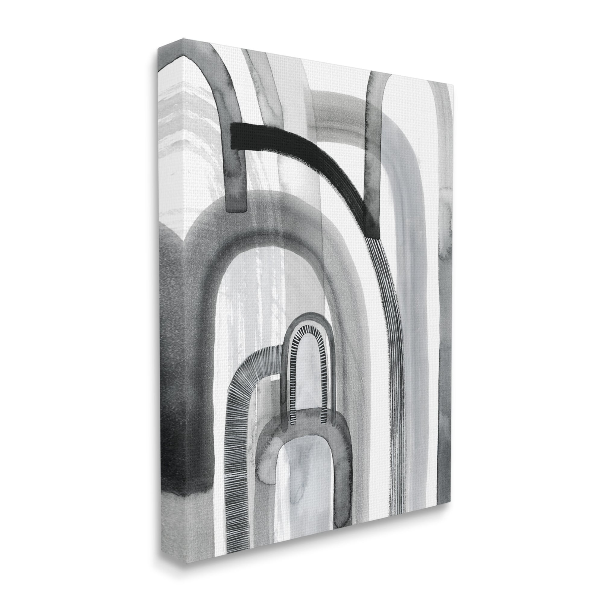 Stupell Industries Abstract Opaque Arches Black Grey White Canvas Wall Art