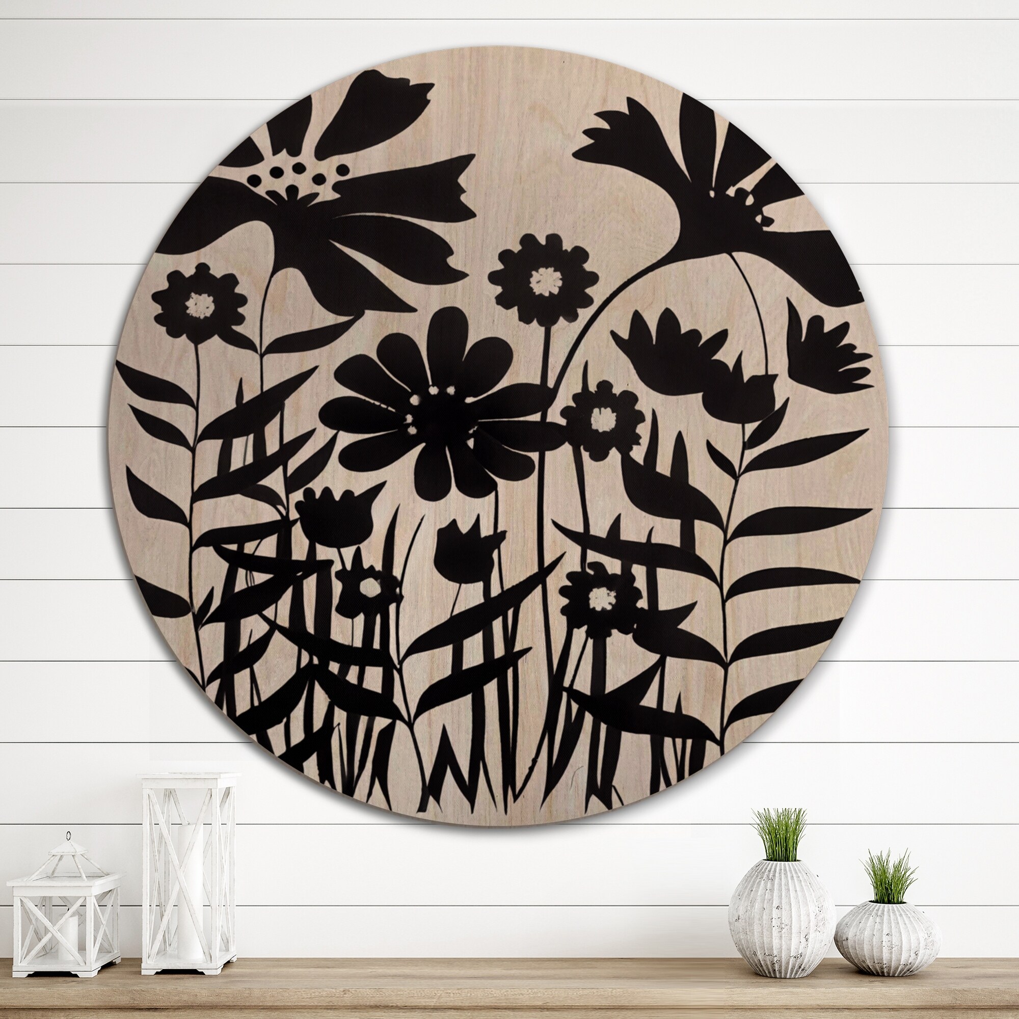 Designart "Black And White Graphic Flowers V" Floral Wood Wall Art - Natural Pine Wood