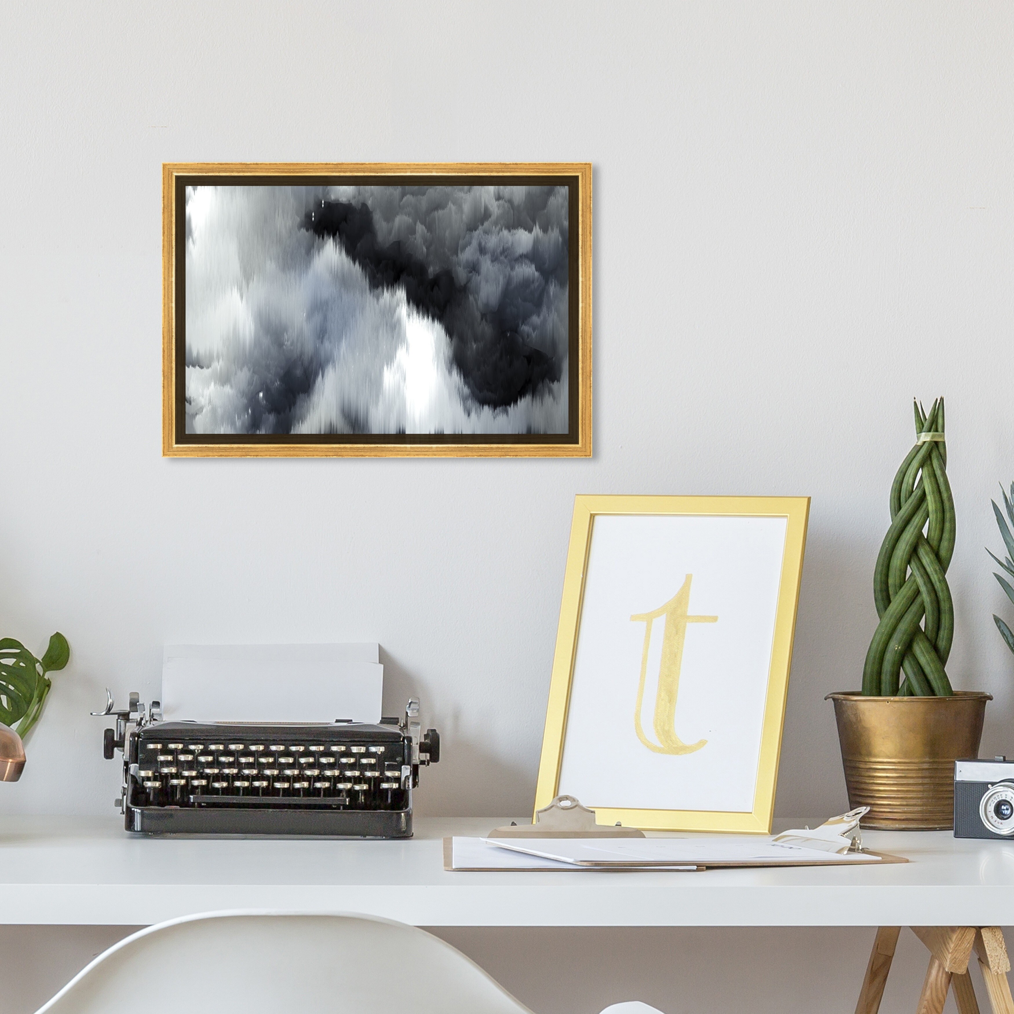 Oliver Gal Abstract Wall Art Framed Canvas Prints 'Smoky Baritone' Paint - Gray, White