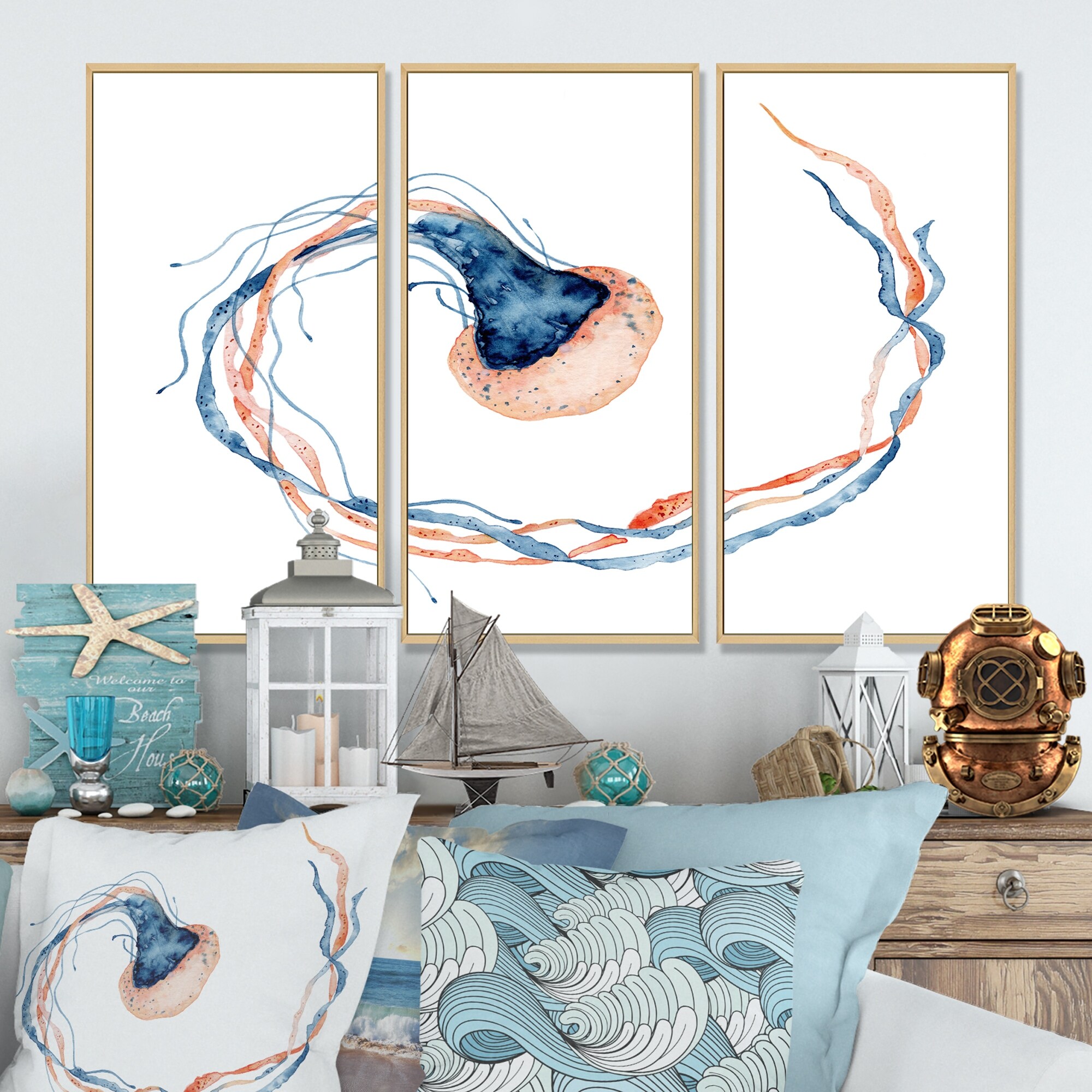 Designart "Painted Medusa on White I" Nautical & Coastal Framed Wall Decor Set of 3 - 4 Colors of Frames