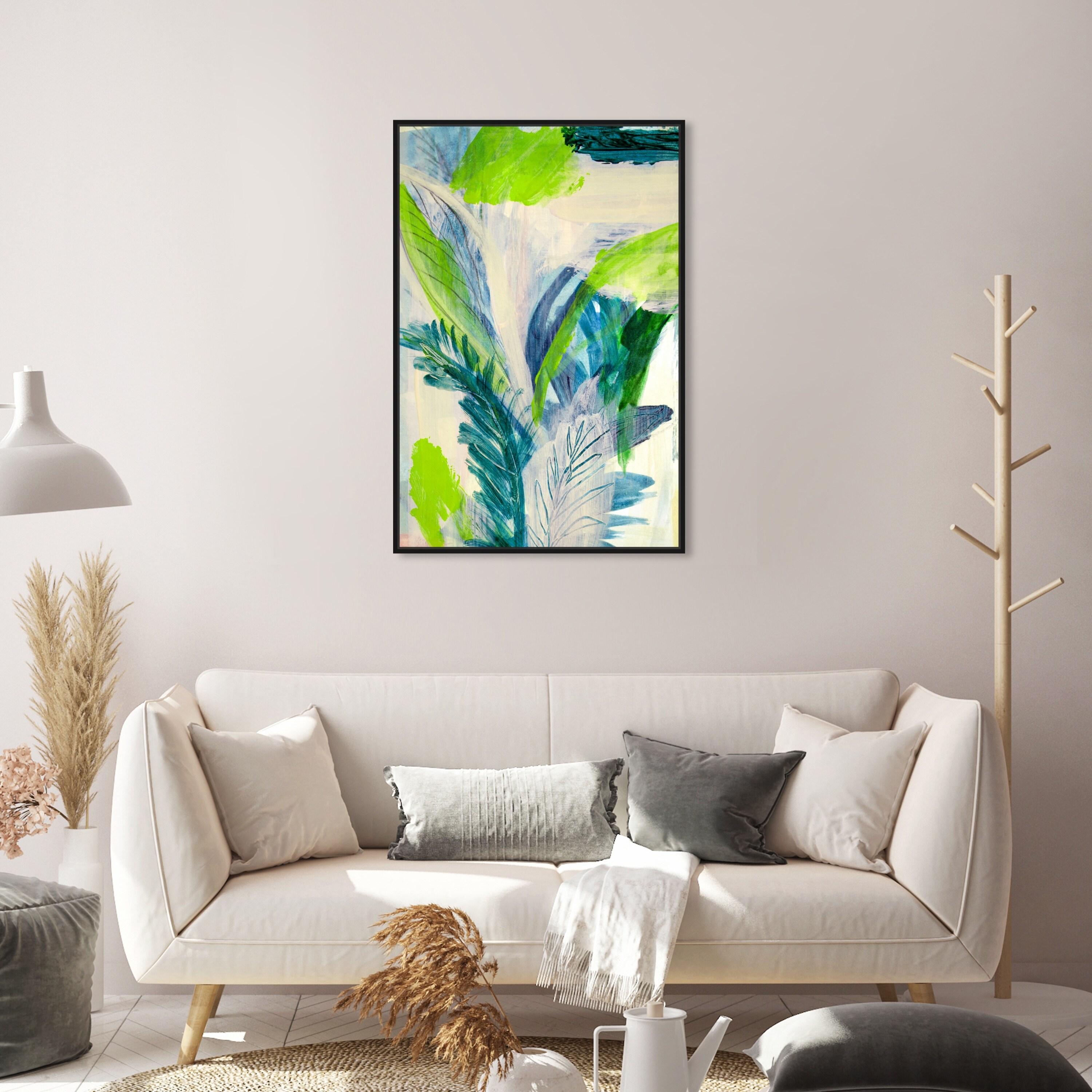Oliver Gal 'Tropical Leaves II' Abstract Wall Art Framed Canvas Print Paint - Green, White