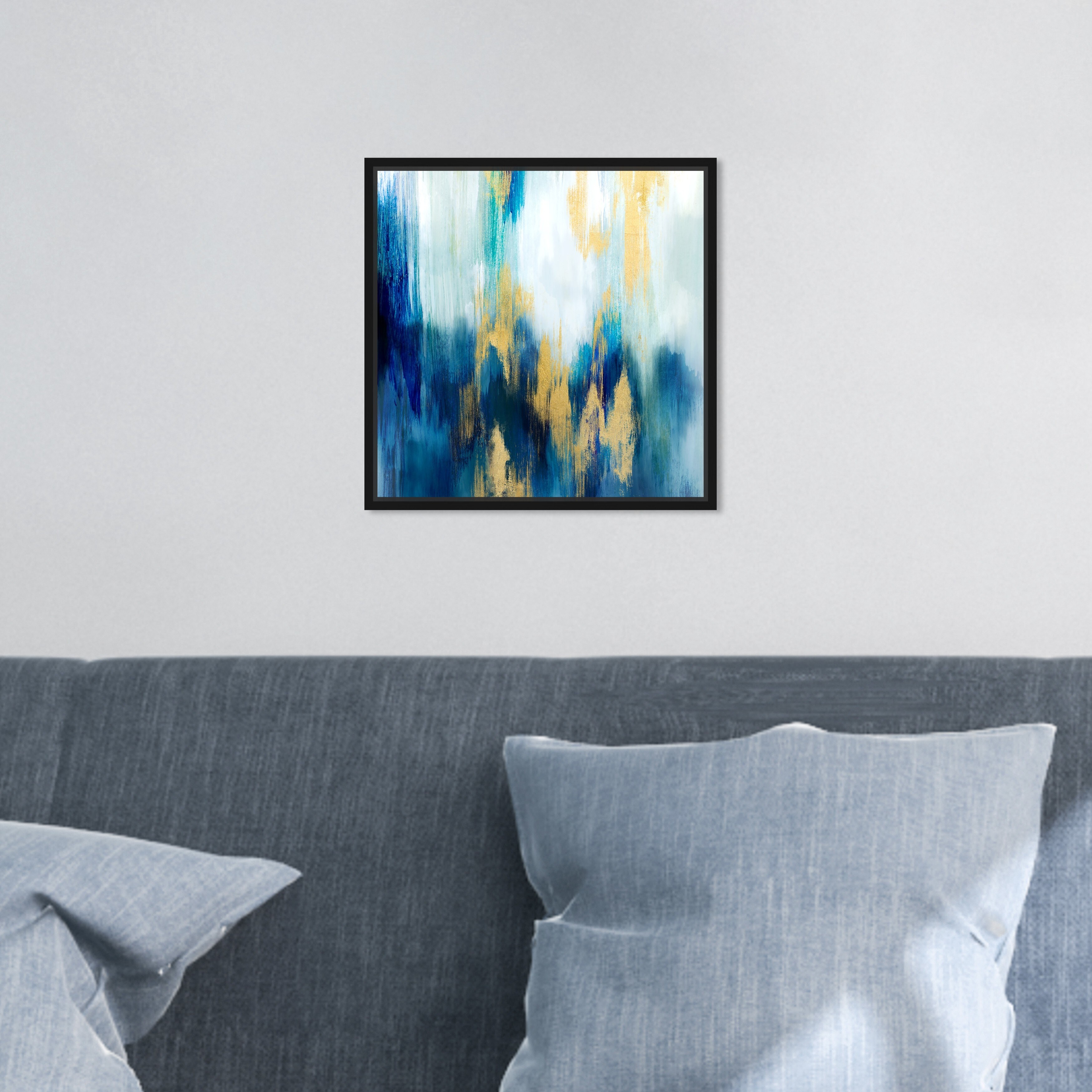 Oliver Gal 'Rainy Gold' Abstract Wall Art Framed Canvas Print Paint - Blue, White