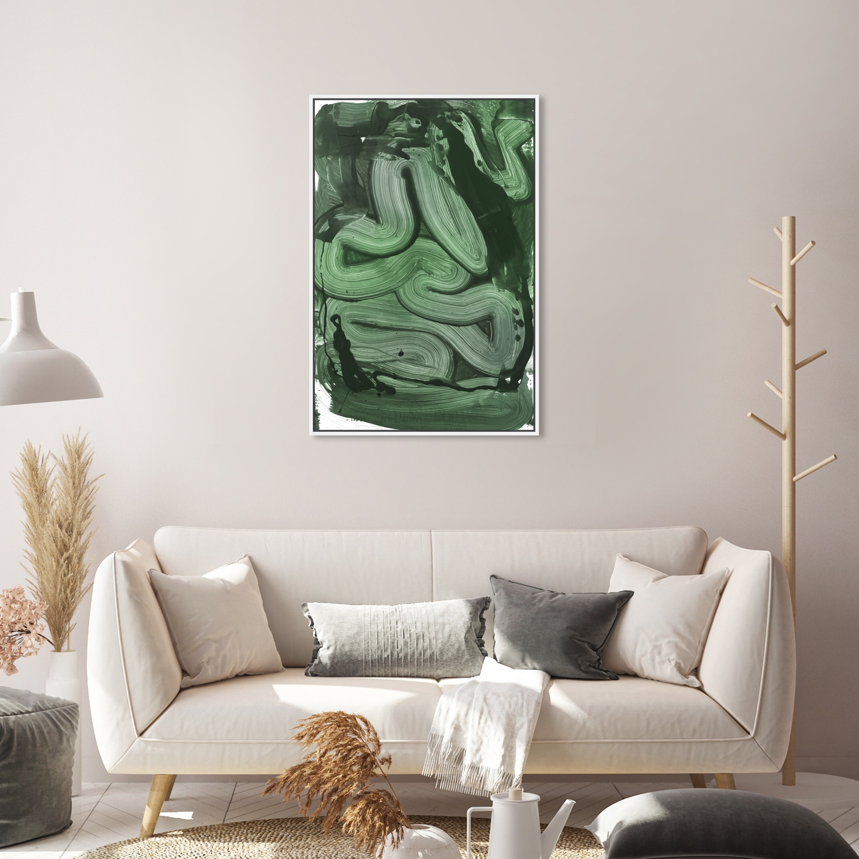 Oliver Gal 'Tiago Magro - Swirling Green' Abstract Wall Art Framed Canvas Print Paint - Green, White
