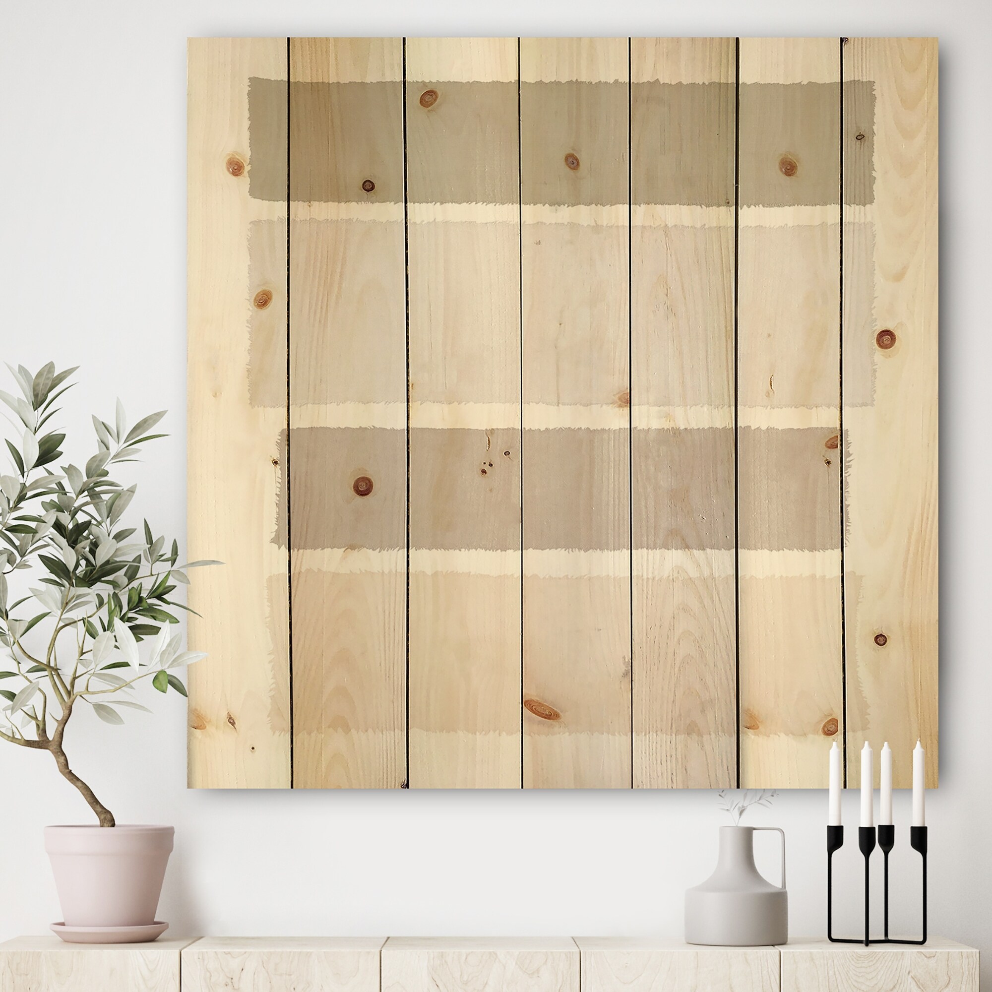 Designart 'Painted Weaving I Neutral on White Sq' Modern Geometric Print on Natural Pine Wood - Grey