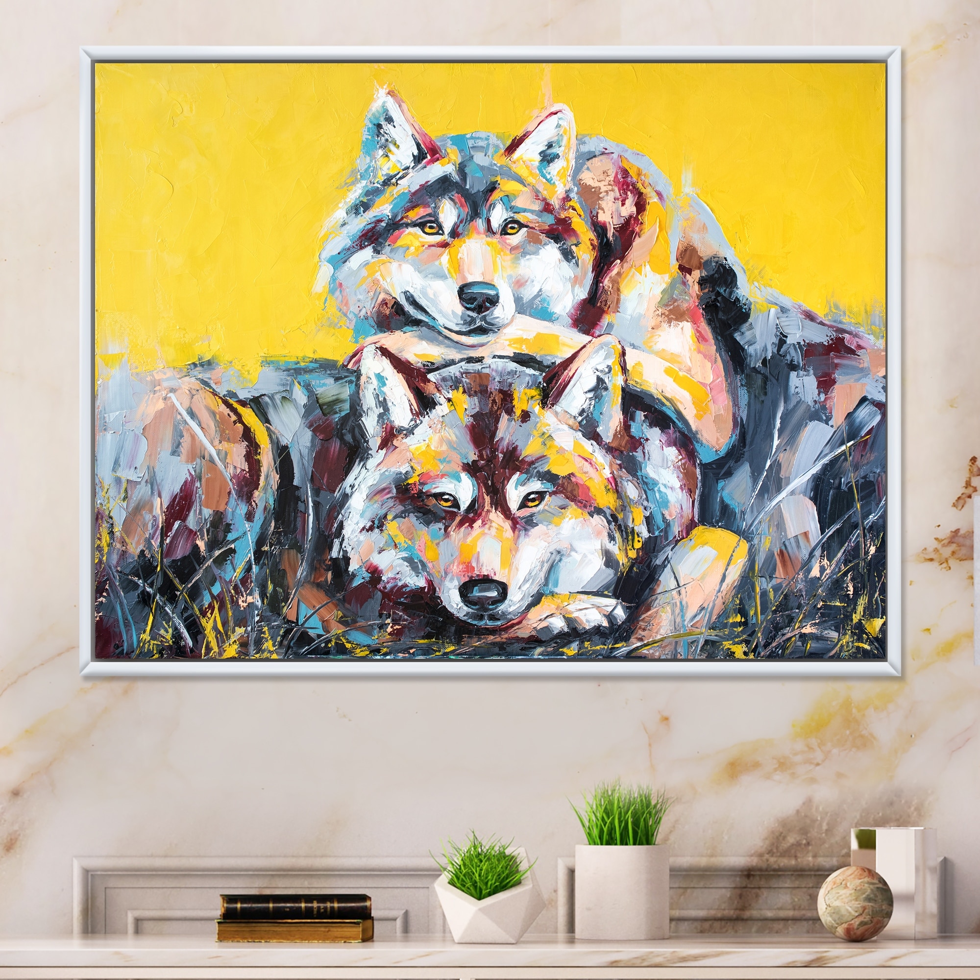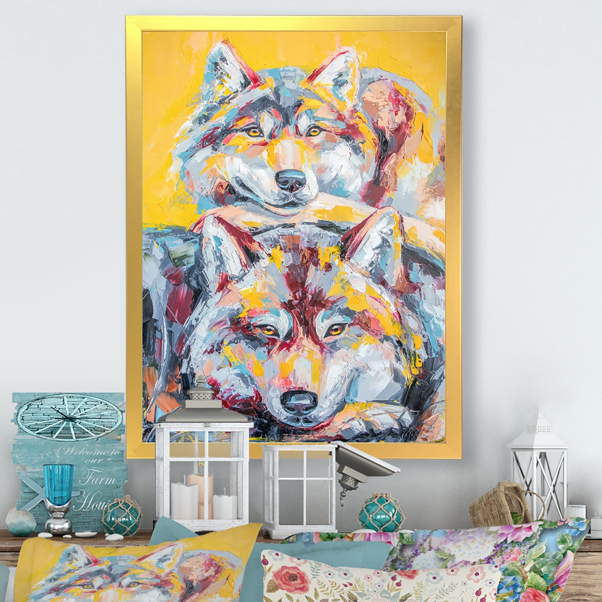 Designart "Colorful Wolf Wildlife Emotion" Modern Framed Canvas artwork