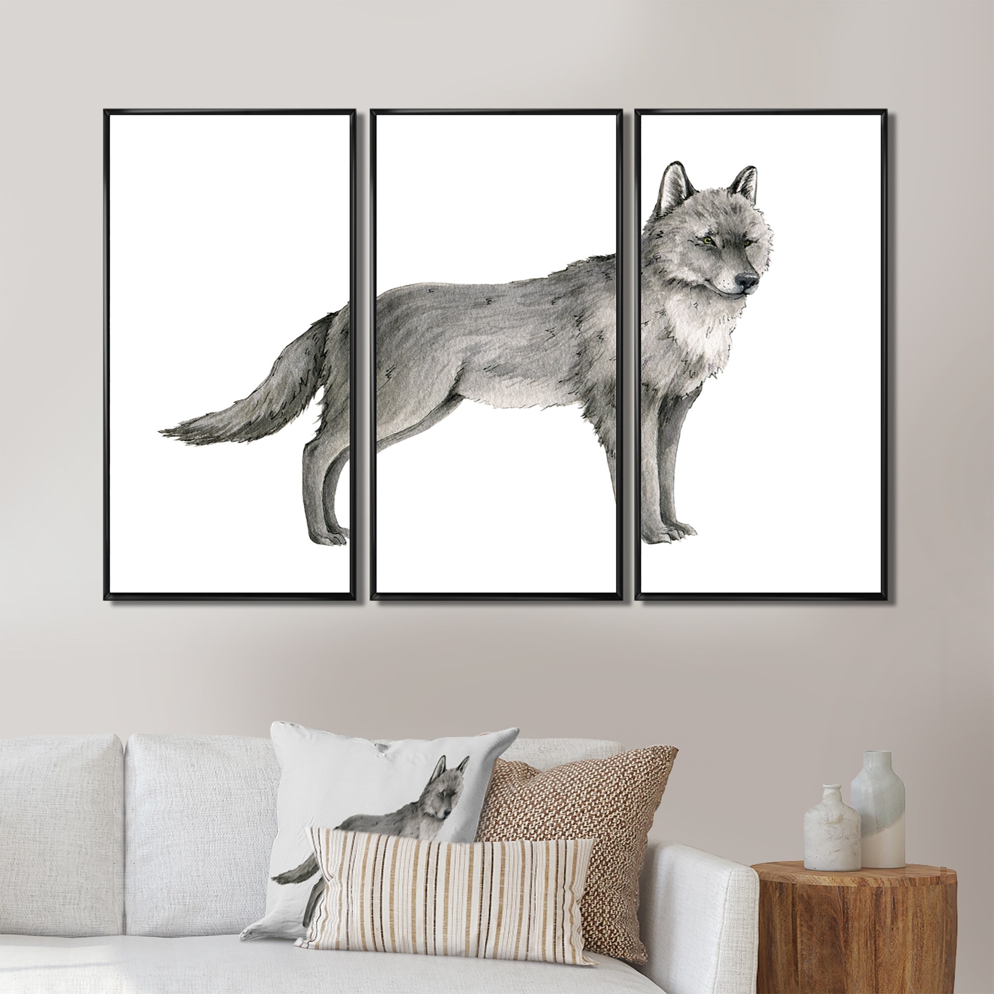 Designart "Portrait Of a Wolf I" Traditional Framed Wall Decor Set of 3 - 4 Colors of Frames