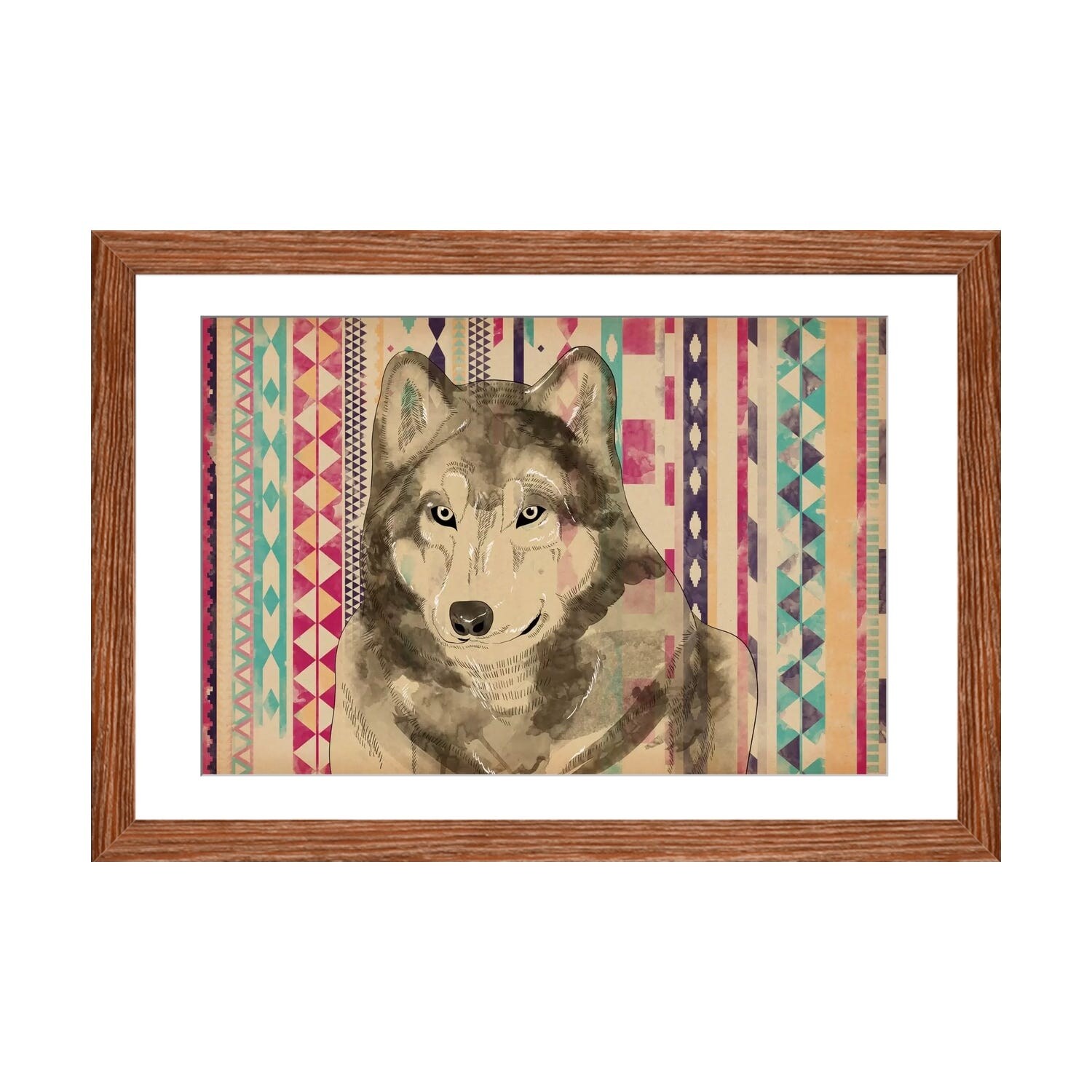 Designart 'Colorful Wolf Wildlife Emotion III' Traditional Wood Wall Art Décor - Natural Pine Wood