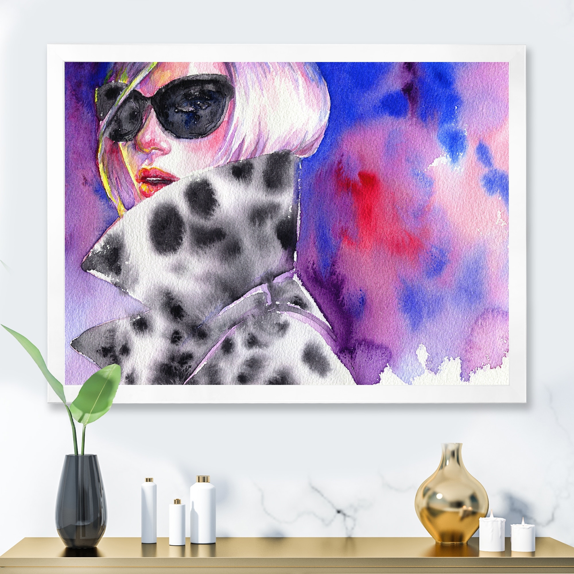 Designart "Colorful Fashionista Woman Portrait V" Glam Framed Art Print
